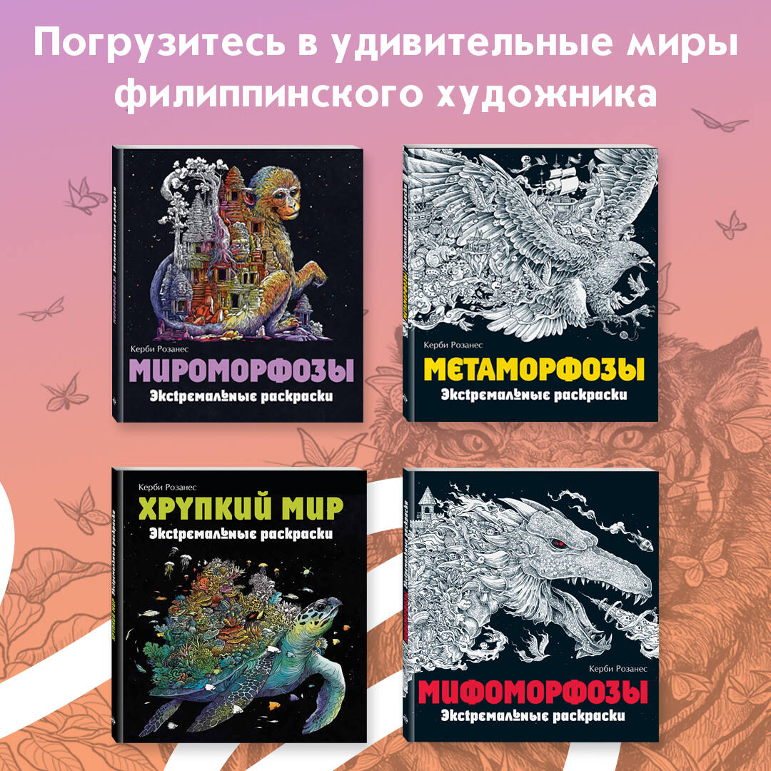 Встречайте новые экстремальные раскраски от художника-автора бестселлеров «Нью-Йорк Таймс» Керби Розанеса! На этот раз на 55 иллюстрациях, полных мельчайших деталей высочайшей четкости, оживают мифы и легенды древности. Вас ждет встреча не только с известными персонажами мифологий разных стран, но и знакомство с героями, о которых вы, возможно, никогда не слышали. На страницах раскраски персонажи сталкиваются, борются и преобразуются в удивительные и известные нам ландшафты планеты. Благодаря этому приему вы остро ощущаете, как миф и древность оживают прямо перед вашими глазами, оставаясь не просто изгибом на поверхности земли, а удивительной и фантастической историей забытого и пронизанного магией прошлого. Воюющие гиганты превращаются в Гигантскую дорогу в Ирландии, Фонтан Наяд в Италии оживает, окаменевшие тролли возвращаются к жизни в исландских скалах и еще много чего поразительного воплощается в знакомом и близком на страницах этой раскраски. В конце книги вы найдете краткое описание каждого мифического существа и его удивительной истории, что позволит еще сильнее погрузиться в магию древнего, мифического прошлого, когда по земле бродили великаны, а боги вели немыслимые сражения и Луну по ночам проглатывал коварный ящер.