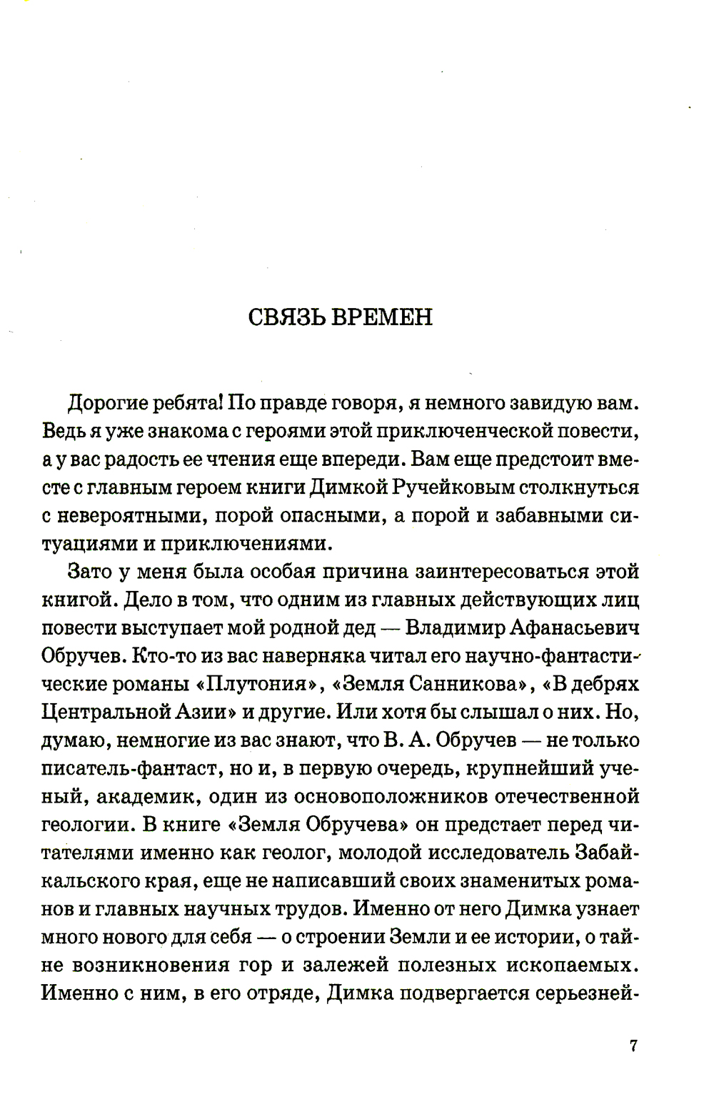 Старшеклассник Дима Ручейков отправляется в настоящую геологическую экспедицию в Сибирь. Там его ждут удивительные приключения, а благодаря легендарному путешественнику, геологу и писателю-фантасту Владимиру Афанасьевичу Обручеву перед ним откроется увлекательный мир геологии. Он узнает о происхождении гор и впадин, о вулканах, о вечной мерзлоте и о многом другом. А вот как произошла встреча нашего современника и ученого, жившего в прошлом веке, читатели узнают из самой повести.