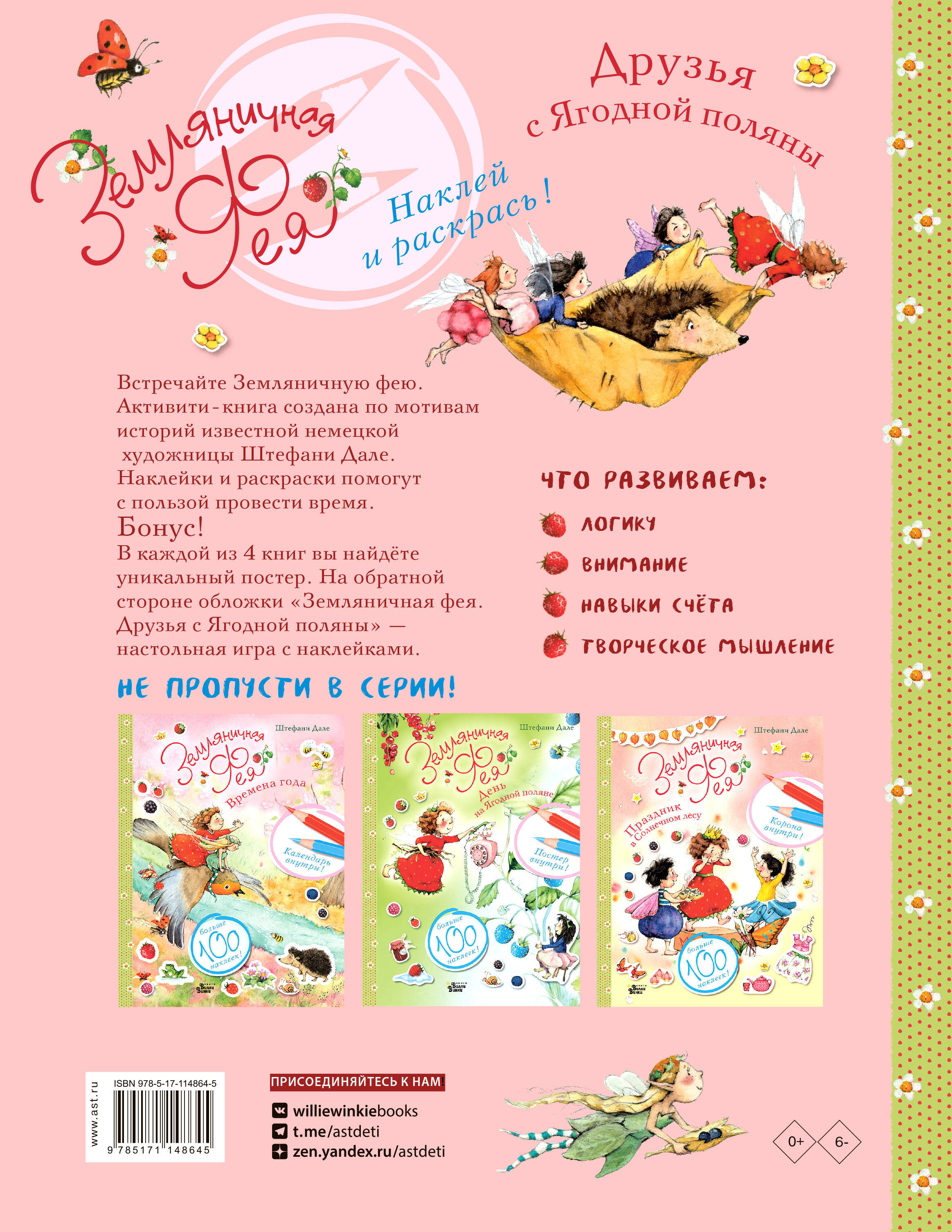3 фишки: • Возраст 3-6 лет • 100 наклеек • Бонус! Настольная игра внутри Раскраски и наклейки с популярным персонажем из серии книг о Земляничной фее увлекут ребенка. Бонус! В каждой из 4 книг вы найдете уникальный постер. На обратной стороне обложки «Земляничная фея. Друзья с Ягодной поляны» настольная игра с наклейками. Что развиваем: • Логику • Внимание • Навыки счета • Творческое мышление| Издательство | ИЗДАТЕЛЬСТВО "АСТ" |