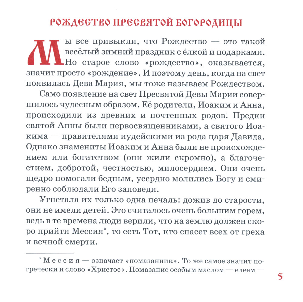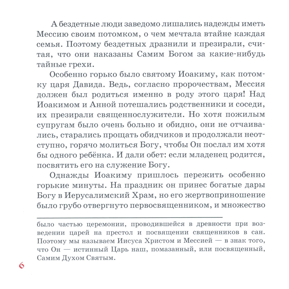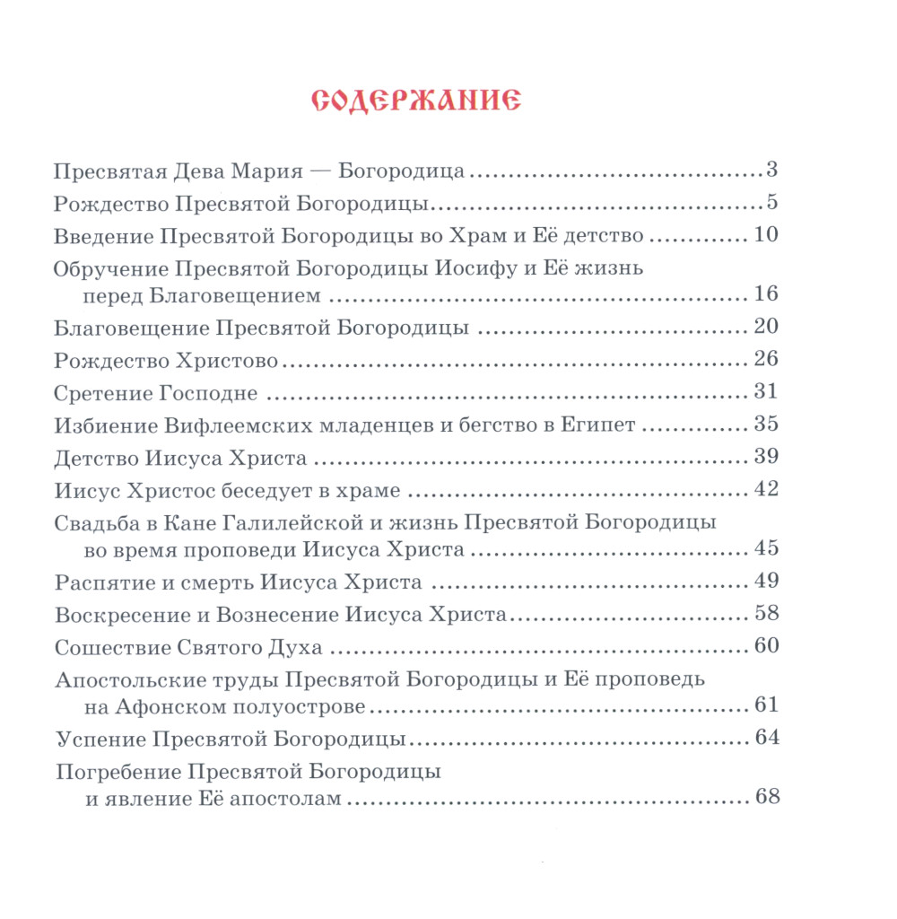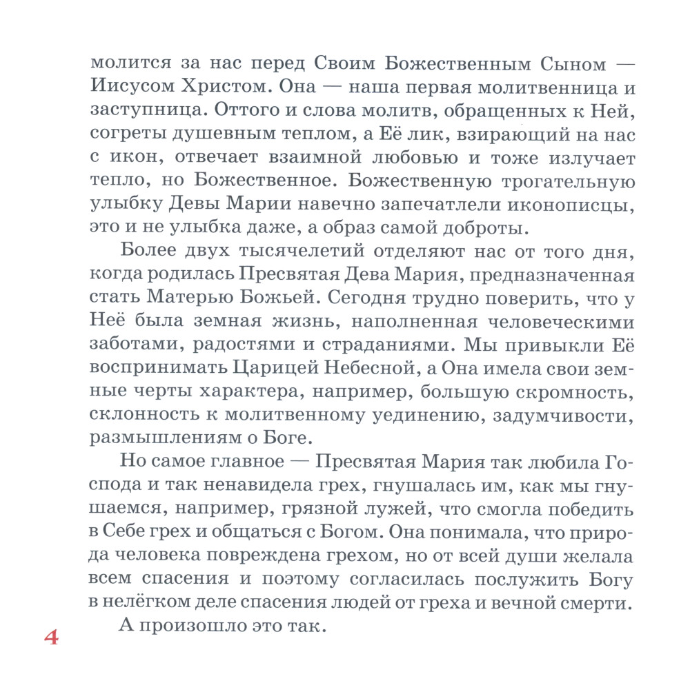 Книга составлена на основе Священного Предания о жизни Пресвятой Богородицы Девы Марии. Доступным для детей языком излагаются основные вехи земной жизни Царицы Небесной, описываются Её главные внутренние качества, предопределившие выбор Господа воплотиться именно от Неё и позволившие Ей стать Честнейшей Херувим и Славнейшей без сравнения Серафим, - преданность в волю Божию, безграничная любовь к Богу, доверие Ему, смирение - словом, те качества, которым необходимо подражать каждому христианину.| Издательство | Скрижаль |
