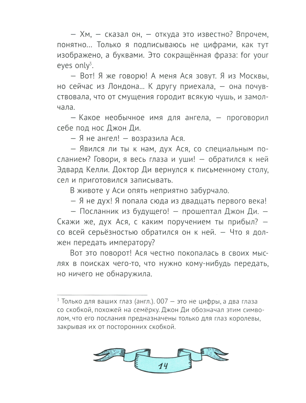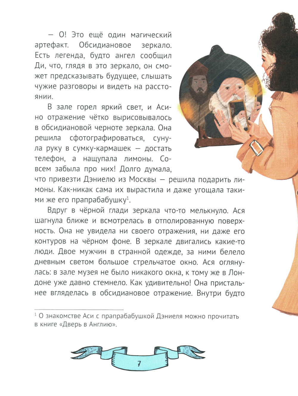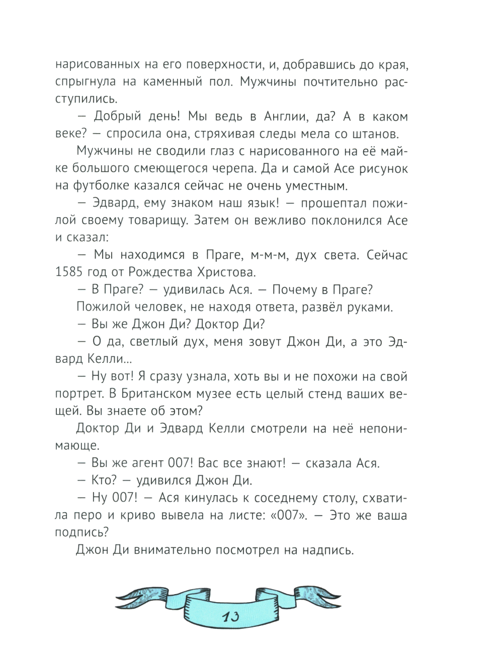 Ася Самойлова знает: перемещение во времени случается, когда его совсем не ждёшь! В этот раз старинное зеркало в музее открывает героине портал в Прагу конца XVI века. Здесь Ася оказывается в эпицентре дворцовых интриг и мистических событий, в ходе которых не только подсказывает алхимику Джону Ди будущее, знакомится с императором Рудольфом II и подкидывает идею для портрета живописцу Джузеппе Арчимбольдо, но и умудряется попасть в средневековую темницу. Сможет ли героиня спастись, вернуться обратно в XXI век, а также разгадать загадку своих удивительных перемещений во времени? Для среднего школьного возраста.| Издательство | Абраказябра |