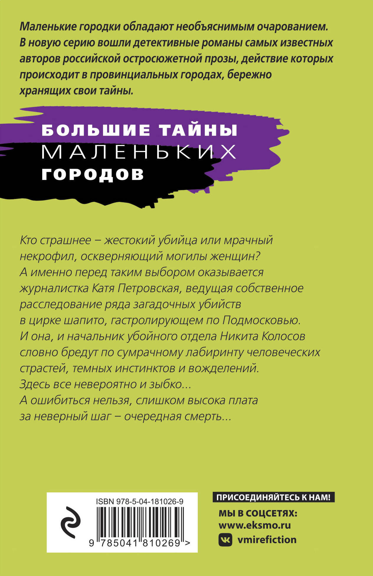 Кто страшнее - жестокий убийца или мрачный некрофил, оскверняющий могилы женщин? А именно перед таким выбором оказывается журналистка Катя Петровская, ведущая собственное расследование ряда загадочных убийств в цирке-шапито, гастролирующем по Подмосковью. И она, и начальник «убойного отдела» Никита Колосов словно бредут по сумрачному лабиринту человеческих страстей, темных инстинктов и вожделений. Здесь все невероятно и зыбко... А ошибиться нельзя, слишком высока плата за неверный шаг - очередная смерть... Романы потомственного следователя Татьяны Степановой позволяют читателю побывать в литературной «комнате страха». Таинственные убийства, почти осязаемая атмосфера преступления, томительное и тревожное ожидание чего-то неведомого, пугающего... Все это Татьяне Степановой удается воспроизвести просто блестяще. Случайные встречи, повседневные дела, незначительные детали изображаются в ее детективах в каком-то особом, драматическом свете, словно безобидный весенний луг перед стремительно надвигающейся грозой.