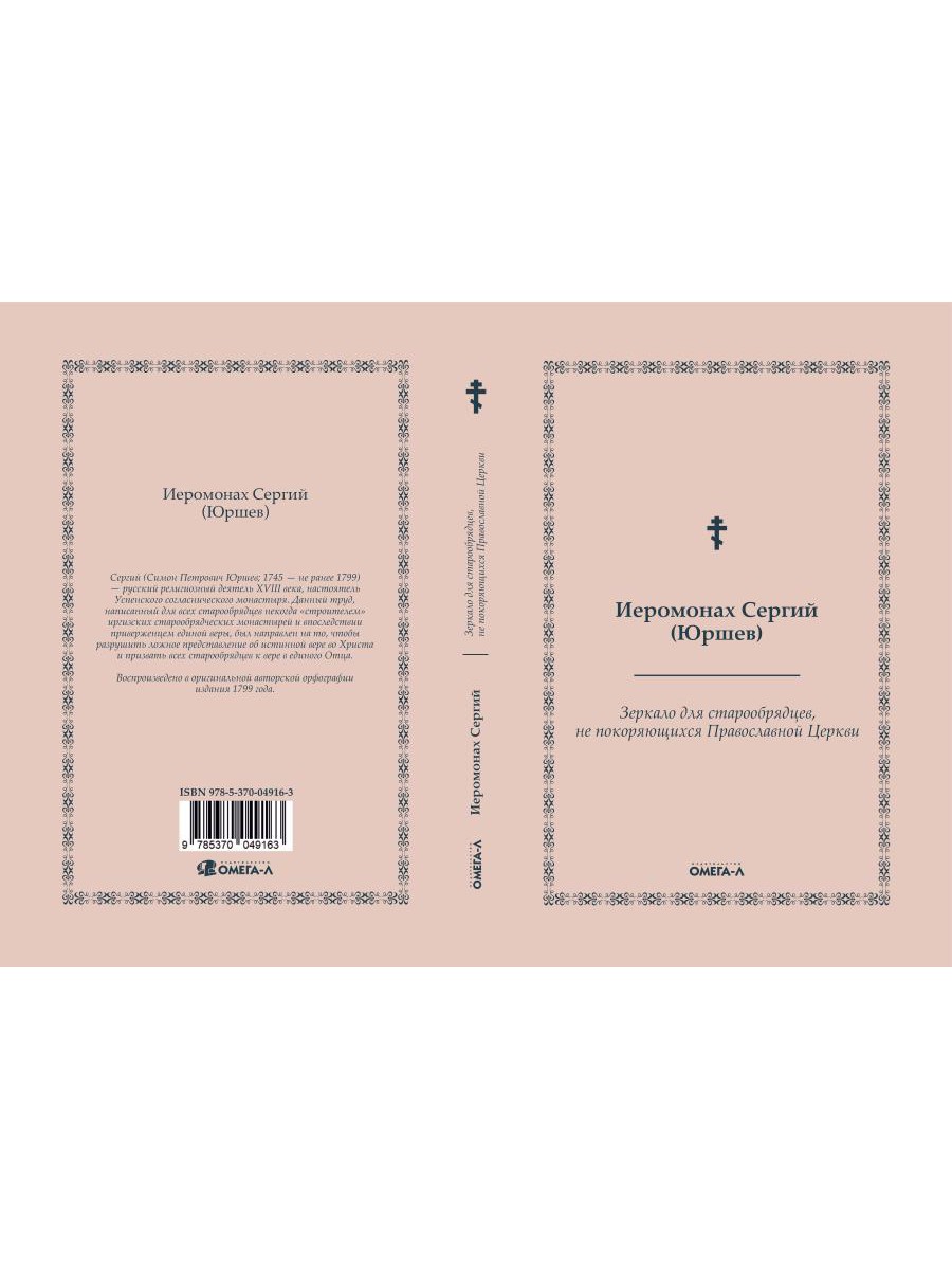 Сергий (Симон Петрович Юршев; 1745 - не ранее 1799) - русский религиозный деятель XVIII века, настоятель Успенского согласнического монастыря. Данный труд, написанный для всех старообрядцев некогда «строителем» иргизских старообрядческих монастырей и впоследствии приверженцем единой веры, был направлен на то, чтобы разрушить ложное представление об истинной вере во Христа и призвать всех старообрядцев к вере в единого Отца. Воспроизведено в оригинальной авторской орфографии издания 1799 года (СПб. : При Губернском правлении, 1799. - 308 с.).| Издательство | Омега-Л |
