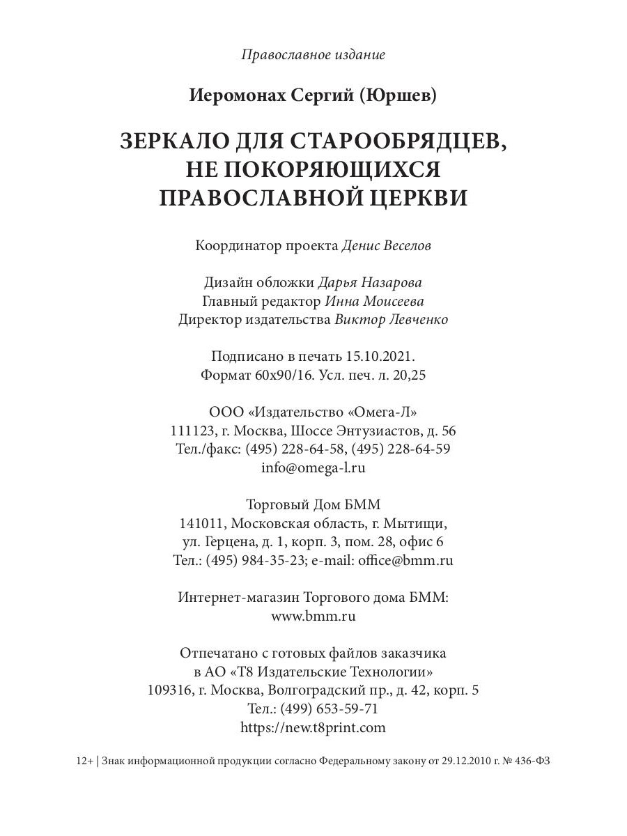 Аннотация: Зеркало для старообрядцев, не покоряющихся Православной Церкви