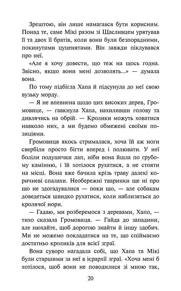 Перша книга другого циклу «Затемнення» всесвітньовідомої серії «Зграя». Попри все добро, яке Громовиця зробила для своєї зграї, їй усе одно не довіряють. То виходить, що тавро лютопсиці переслідуватиме її все життя? А життя тим часом вирує: у зграї назрівають романтичні стосунки, і не одні… Запитань довкола не меншає: хто вбив маленьке лисеня? Хто підкинув Ладі впольовану здобич? Але найголовніше, чи вийде в собак відшукати омріяного Золотого Оленя? Про все це і зграї, і самій Громовиці конче треба дізнатися. Якщо, звісно, на заваді не стане її власна пітьма… Подарунок - фірмовий колекційний магніт. Чому варто прочитати: Серія пригодницьких романів-фентезі, які читають підлітки та їхні батьки. Відкрий для себе ще одну захопливу фентезійну серію про тварин «Зграя» від Ерін Гантер - автора світового бестселера «Коти-вояки». Настав час собакам панувати в дикій природі. Автор: Серія «Зграя» створена британськими письменницями під загальним псевдонімом Ерін Гантер. Серія видається у Великій Британії з 2012 року і дотепер.| ISBN | 978-617-8387-26-6 |