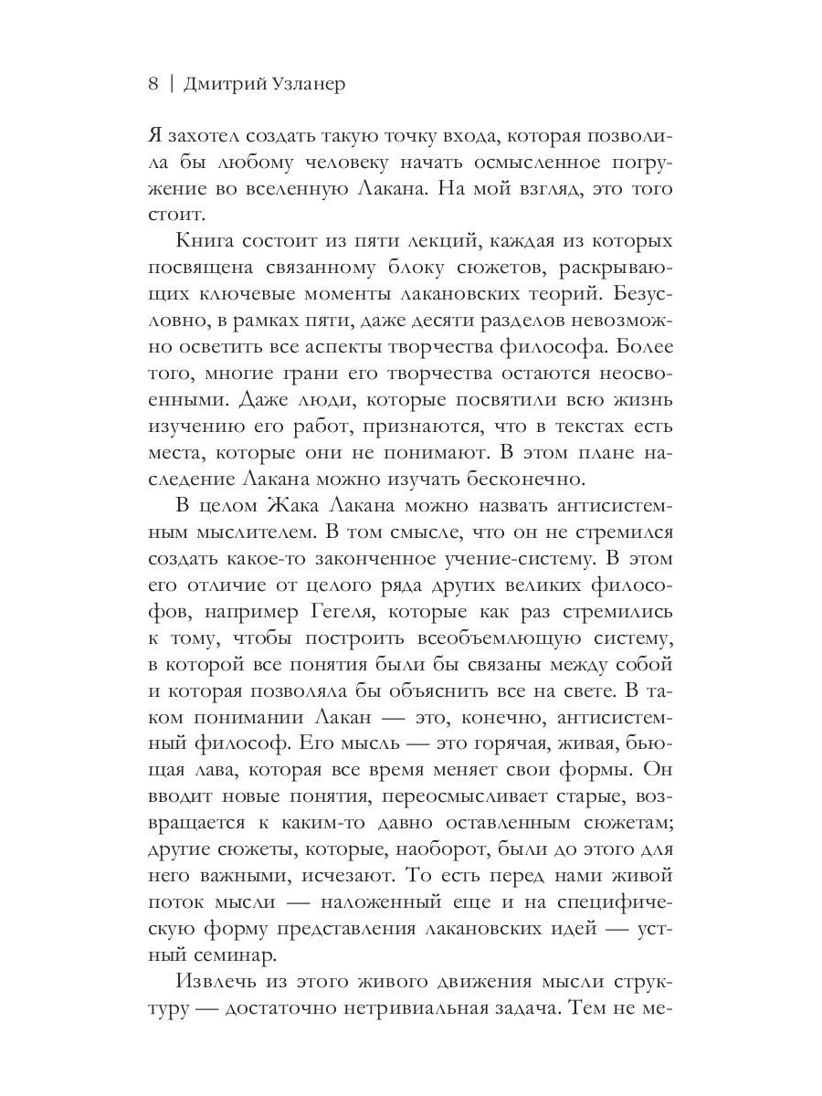 Фигура Жака Лакана остается одной из самых спорных в интеллектуальной истории XX века. Одни считают его гением, внесшим колоссальный вклад в развитие философии и психоанализа, другие - шарлатаном, использовавшим «интеллектуальные уловки», чтобы запудрить головы легковерным почитателям. Так каким он был человеком? Почему не писал книг? Что объединяло его с сюрреалистами? Почему всякий раз при попытке вникнуть в его идеи, мы сталкиваемся со столь значительными затруднениями? Возможно ли вообще понимание его идей? Дмитрий Узланер отвечает на эти и многие другие вопросы. Он помогает не только проникнуть во вселенную французского философа и психоаналитика, но и убеждает в ней задержаться.