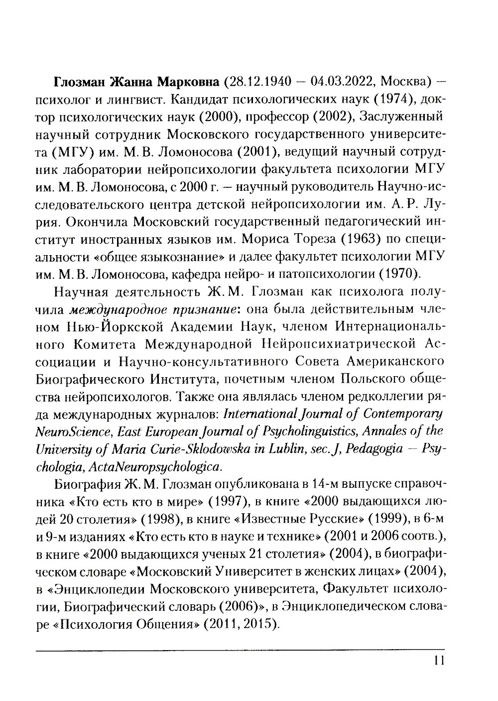 Книга посвящена памяти выдающегося советского и российского нейропсихолога, почетного профессора МГУ имени Ломоносова Жанны Марковны Глозман. Своими воспоминаниями о ней делятся сотрудники Научно-исследовательского центра детской нейропсихологии им. А. Р. Лурия, зарубежные и российские коллеги-психологи, профессора, ученики и добрые друзья. Помимо биографии и автобиографии, в книгу включены полный текст ее докторской диссертации и предисловия к ряду знаковых книг, написанных Ж. М. Глозман лично или в соавторстве. В воспоминаниях о ней содержится много рассказов о ее увлекательных путешествиях, о дружбе с Л. Ф. Обуховой и просто о том, каким Человеком с большой буквы она была. Для психологов, студентов факультетов психологии и всех читателей, интересующихся историей отечественной психологии.| Издательство | Смысл |