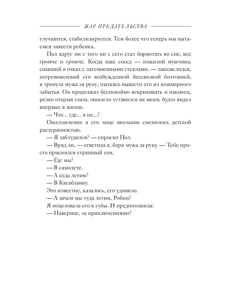 Автор мировых бестселлеров, признанный мастер захватывающих романов, Дуглас Кеннеди отправляет читателя в головокружительное путешествие. Робин знала, что ее муж Пол не идеален. Но он сказал: им крупно повезло, что они нашли друг друга. И она в это поверила. Он умный, страстный, талантливый. Или она хотела так думать. Отправляясь с мужем в Марокко, Робин уверена, что она наконец-то сможет забеременеть. Но внезапно идиллическому и спокойному существованию приходит конец. Номер, в котором они остановились, разгромлен, повсюду пятна крови, а Пол исчез, оставив записку со словами "Я должен умереть". Робин попадает под подозрение полиции, и все в ее жизни меняется.| Издательство | Рипол Классик |