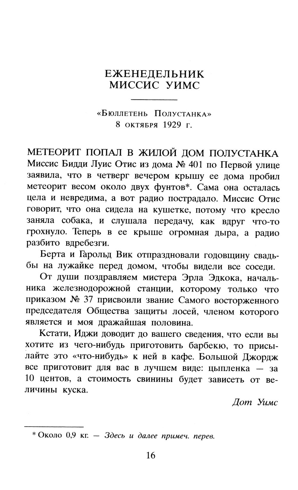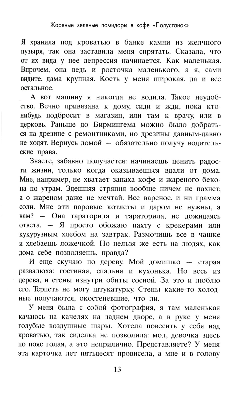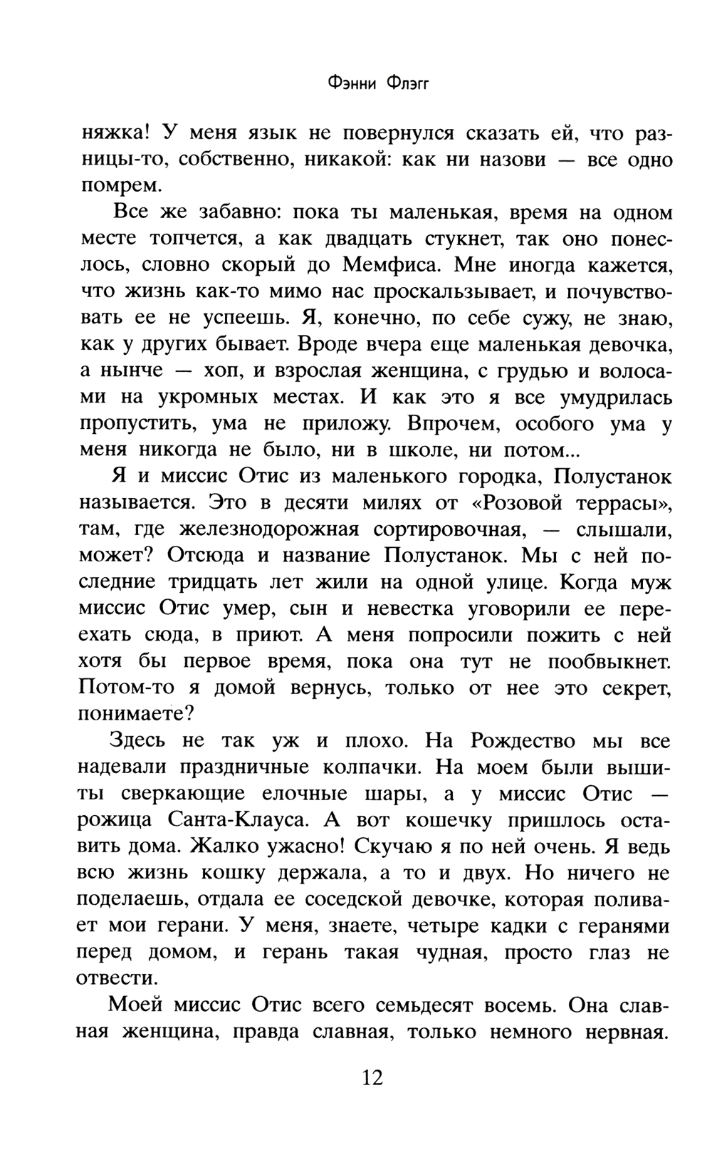 Если приблизить этот томик к уху, то наверняка можно услышать чей-то смех, плач, разговоры, шум поезда, шорох листвы, звяканье вилок и ложек. Прислушайтесь к звукам, пробивающимся через обложку, и вы узнаете историю одного маленького американского городка, в котором, как и везде в мире, переплелись любовь и боль, страхи и надежды, дружба и ненависть. История эта будет рассказана с такой искренностью, что запомнится на долгие годы, и роман Фэнни Флэгг станет одной из самых любимых книг - как стал он для очень многих во всем мире. Иджи всегда была сорванцом с обостренным чувством справедливости. Такой она и осталась, когда выросла и вместе с любимой подругой открыла кафе «Полустанок», в котором привечает всех, бедных и зажиточных, черных и белых, веселых и печальных. Истории, что происходят с Иджи и ее близкими, иногда до боли реалистичны, а порой они совершенно невероятны, но всегда затягивают, заставляя переживать так, будто все это происходит в реальной жизни. Ибо великий роман Фэнни Флэгг и есть сама жизнь.| Издательство | Фантом Пресс |