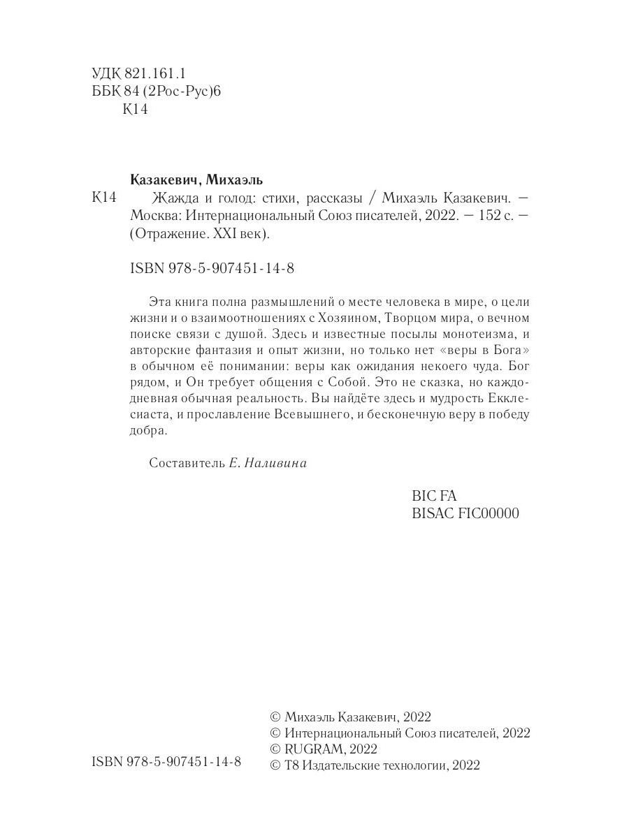 Аннотация: Жажда и голод: стихи, рассказы