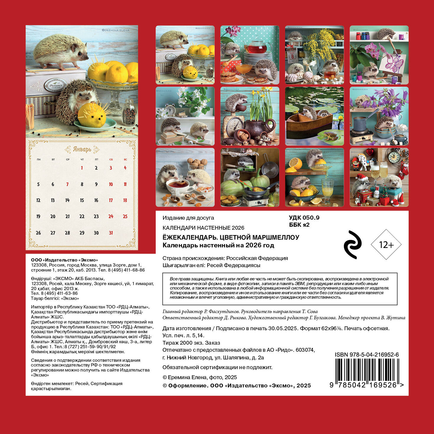 Аннотация: Ёжекалендарь. Цветной маршмеллоу. Календарь настенный на 2026 год (170х170)