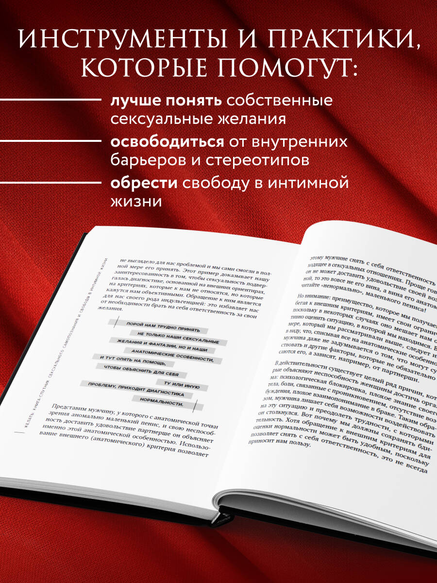 Массовая культура имеет огромное влияние на женщин и на их уверенность в себе. Признанные обществом стандарты женской красоты вынуждают мечтать о более пышных ресницах, прямом и маленьком носике, узкой талии, длинных ногах. Когда женщины испытывают подобное психологическое давление, у них падает не только самооценка, но и либидо, а за ним - желание и страсть. Такой искусственный подход ведет только к несчастью и потере индивидуальности. Клинический сексолог Од Жюйен за 12 лет работы успела помочь тысячам женщин из разных стран. В своей книге она рассказывает, что делать, если: - вам не хватает уверенности в себе, вы недовольны своим телом или думаете, что «плохо» занимаетесь любовью; - у вас больше нет сексуального желания; - вы не испытываете оргазм (или не знаете, что это такое); - вы хотите узнать больше о своем теле или своем сексе. В этой смелой книге автор приглашает читателей в путешествие-самопознание, подрывая устоявшиеся стереотипы о сексуальности и предлагая эффективные способы исследовать то, что вы действительно хотите. Од Жюйен верит, что истинное удовлетворение приходит не через соответствие вешним ожиданиям, а через глубокое понимание своих желаний и потребностей. «Нетривиальный взгляд сексолога на многие аспекты сексуальной жизни, кажущиеся нам привычными. Автор предлагает отречься от навязываемых представлений о сексуальности и создать свою собственную нормальность. Пересмотреть отношение к традиционному понятию верности в соответствии с индивидуальными особенностями сексуальности, а именно - быть верным не партнеру, а своим желаниям». - Олеся Вольнова, автор канала «Открытый брак Yachtweek» «"Желать" - это ваша возможность честно взглянуть на свою истинную природную сексуальность, начать изучать и раскрывать её, трансформируя при этом свою личность, отношения в паре и приобретая уникальный, бесценный жизненный и интимный опыт. Эта книга - концепция, которая позволит превратить рутинную однообразную интимную жизнь, не приносящую должного удовлетворения, в увлекательное приключение с множеством открытий и сексуальных практик. Раскройте свою уникальность, откажитесь от постановочной, навязанной извне сексуальности, СКАЖИТЕ "НЕТ" ОБЕЗЛИЧИВАНИЮ СВОЕЙ СЕКСУАЛЬНОЙ ЖИЗНИ, и она заиграет новыми красками!» - Динара Березина, акушер-гинеколог, сексолог, автор книги «Секс - это здорово»| Издательство | ООО "Издательство "Эксмо" |