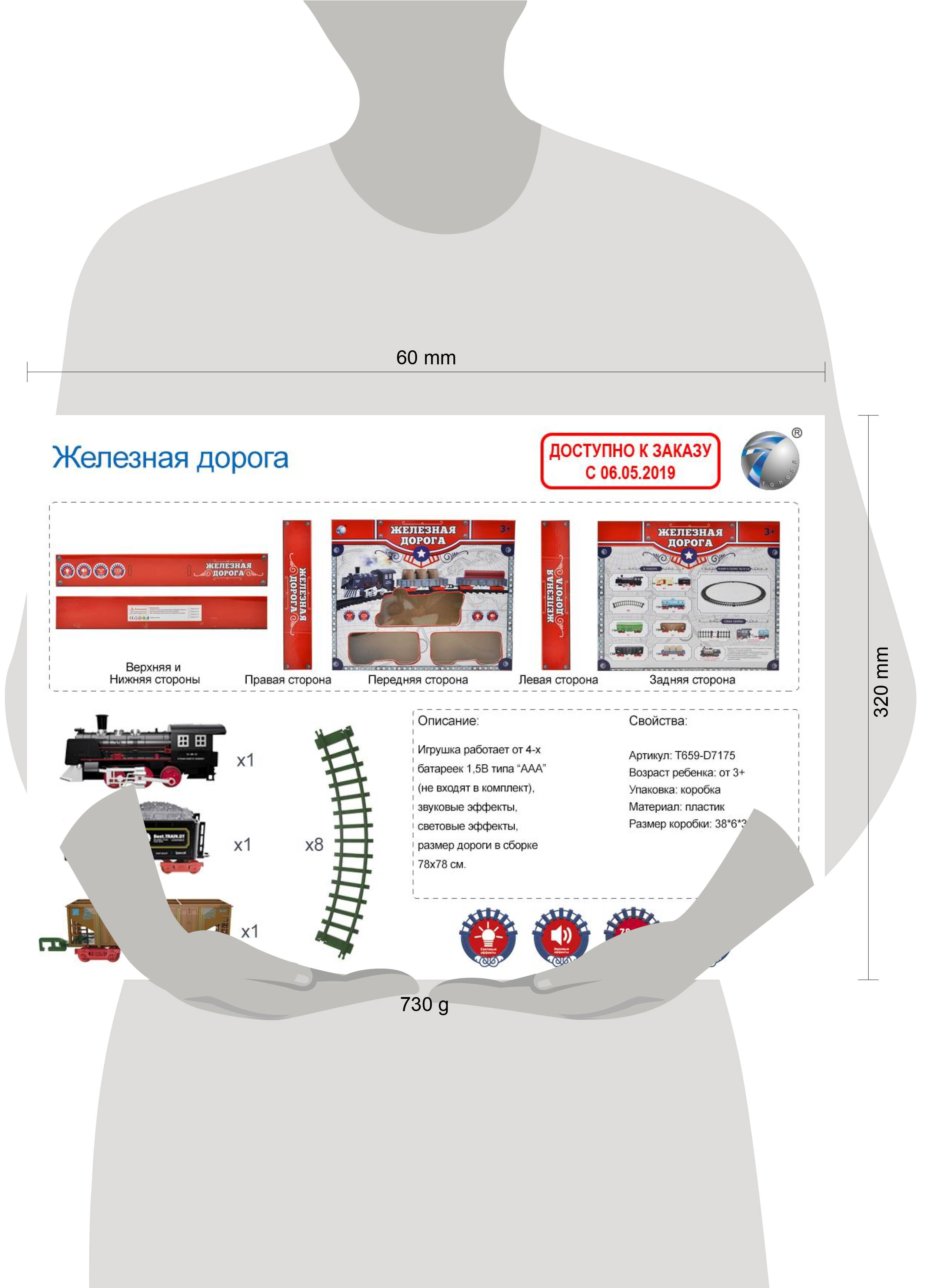 Аннотация: Железная дорога "ГРУЗОВОЙ ЭКСПРЕСС" (38х32см)(11эл, 78х78см в сборе, свет, звук) Арт. T659-D7175