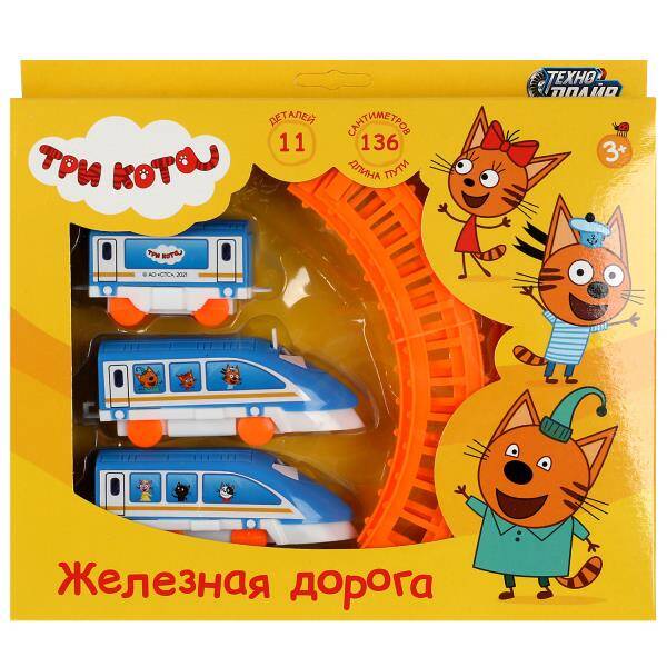 Аннотация: Железная дорога мультяшная Три Кота длина пути 136, кор.25*20,5*4см ТЕХНОДРАЙВ в кор.2*54шт
