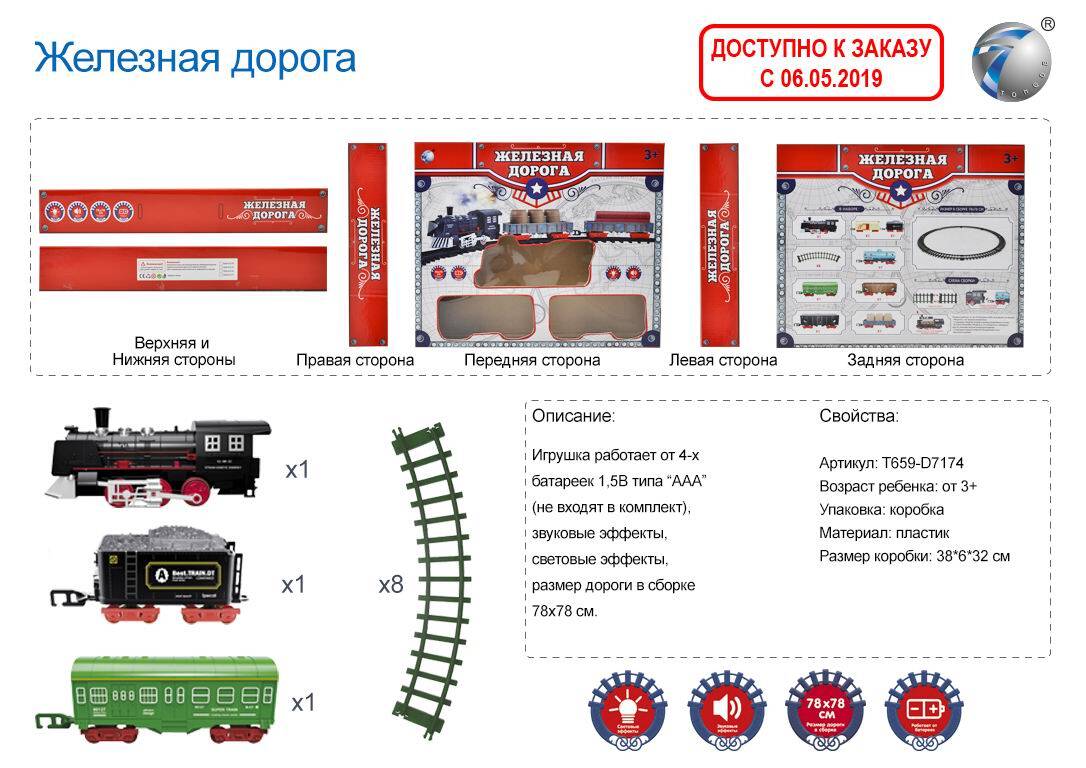 Аннотация: Железная дорога "ПАССАЖИРСКИЙ ЭКСПРЕСС" (38х32см)(11эл, 78х78см в сборе, свет, звук) Арт. T659-D7174