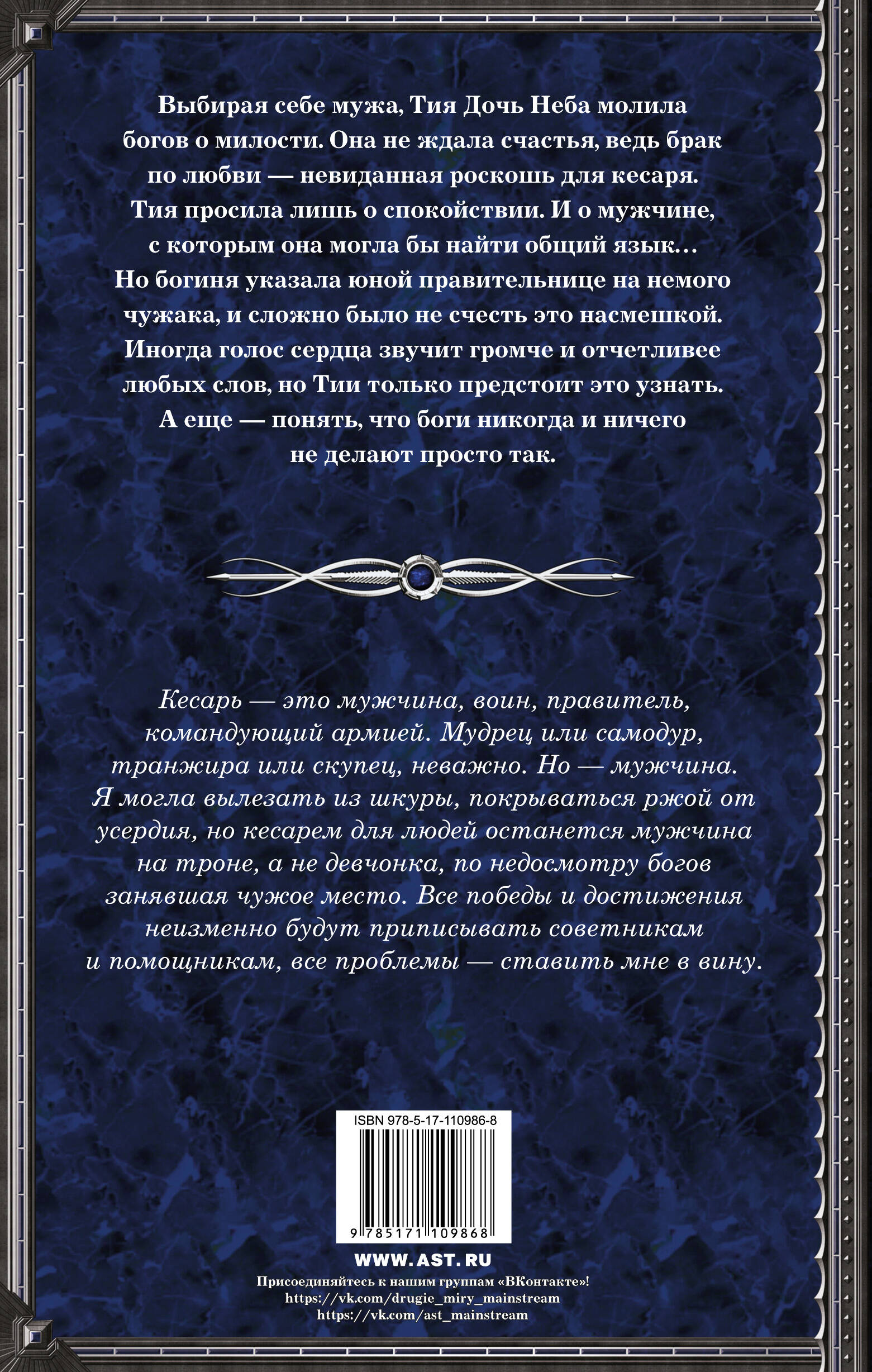 Выбирая себе мужа, Тия Дочь Неба молила богов о милости. Она не ждала счастья, ведь брак по любви - невиданная роскошь для кесаря. Тия просила лишь о спокойствии. И о мужчине, с которым она могла бы найти общий язык… Но богиня указала юной правительнице на немого чужака, и сложно было не счесть это насмешкой. Иногда голос сердца звучит громче и отчетливее любых слов, но Тии только предстоит это узнать. А еще - понять, что боги никогда и ничего не делают просто так.| Издательство | ИЗДАТЕЛЬСТВО "АСТ" |