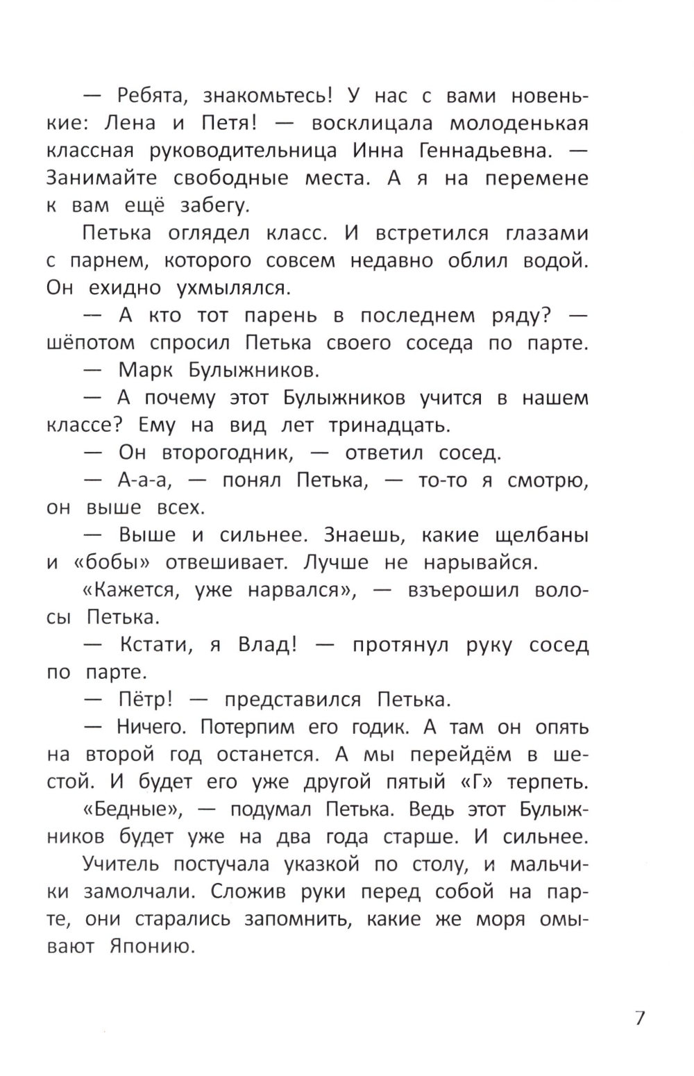 Петька, новенький в пятом классе, сразу попадает в центр внимания. Знакомство с главным задирой класса Марком Булыжниковым приводит к выговору от директора. Ещё и куртки у них одинаковые! Кто бы мог подумать, что именно с этих курток начнётся их с Марком дружба. В процессе поиска создателя популярной у мальчишек игры герои узнают, что между ними много общего.| Издательство | Феникс |