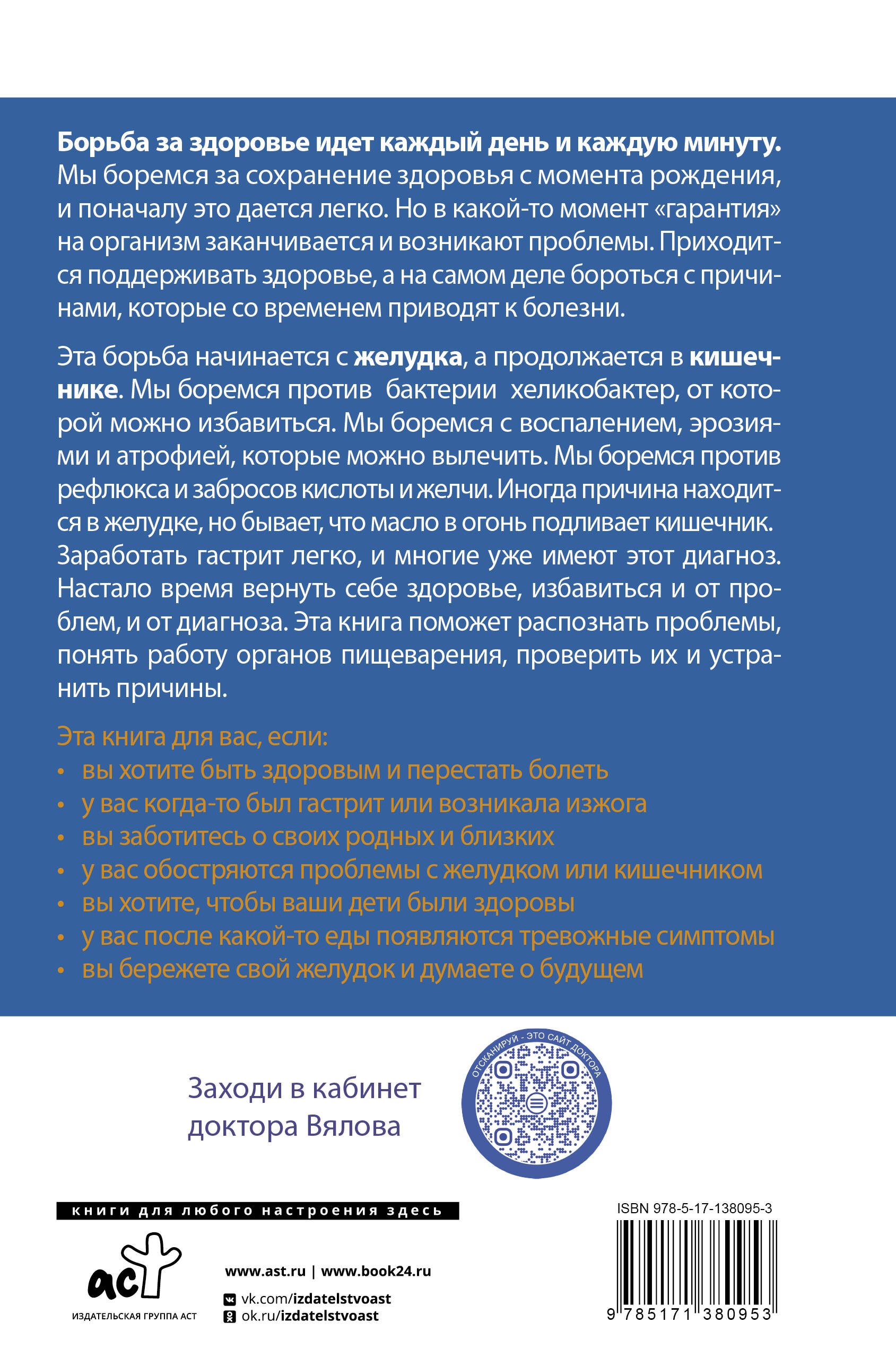 Книга поможет разобраться со злободневными вопросами гастрита, пугающей атрофией и бесконечными спорами в отношении хеликобактерной инфекции. Вы узнаете, почему гастрит не получается вылечить полностью и какие еще причины нужно проверить и устранить. Почему возникает изжога и как от нее избавиться? Книга поможет разобраться в том, что такое кислотность, откуда она берется и почему на самом деле нет никакой разницы между повышенной и пониженной кислотностью. Также Сергей Вялов расскажет, какие бактерии проживают в кишечнике, и познакомит с особенными представителями этого зоопарка (клостридиями, кандидой), про которых сейчас говорят со всех сторон, и каждый придумывает новую сенсацию, подменяя ею реальную информацию. Одна из глав книги посвящена управлению кишечными рисками, способам влияния на состояние кишечника и расположенной в нем микрофлоры, а также нашумевшему понятию нарушенной кишечной проницаемости, или «дырявому кишечнику».| Издательство | АСТ |