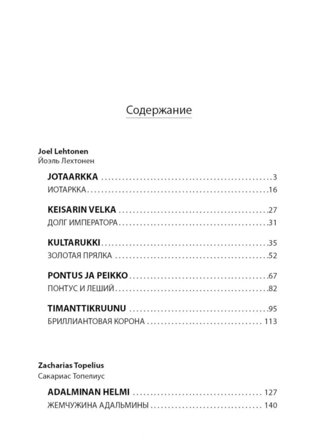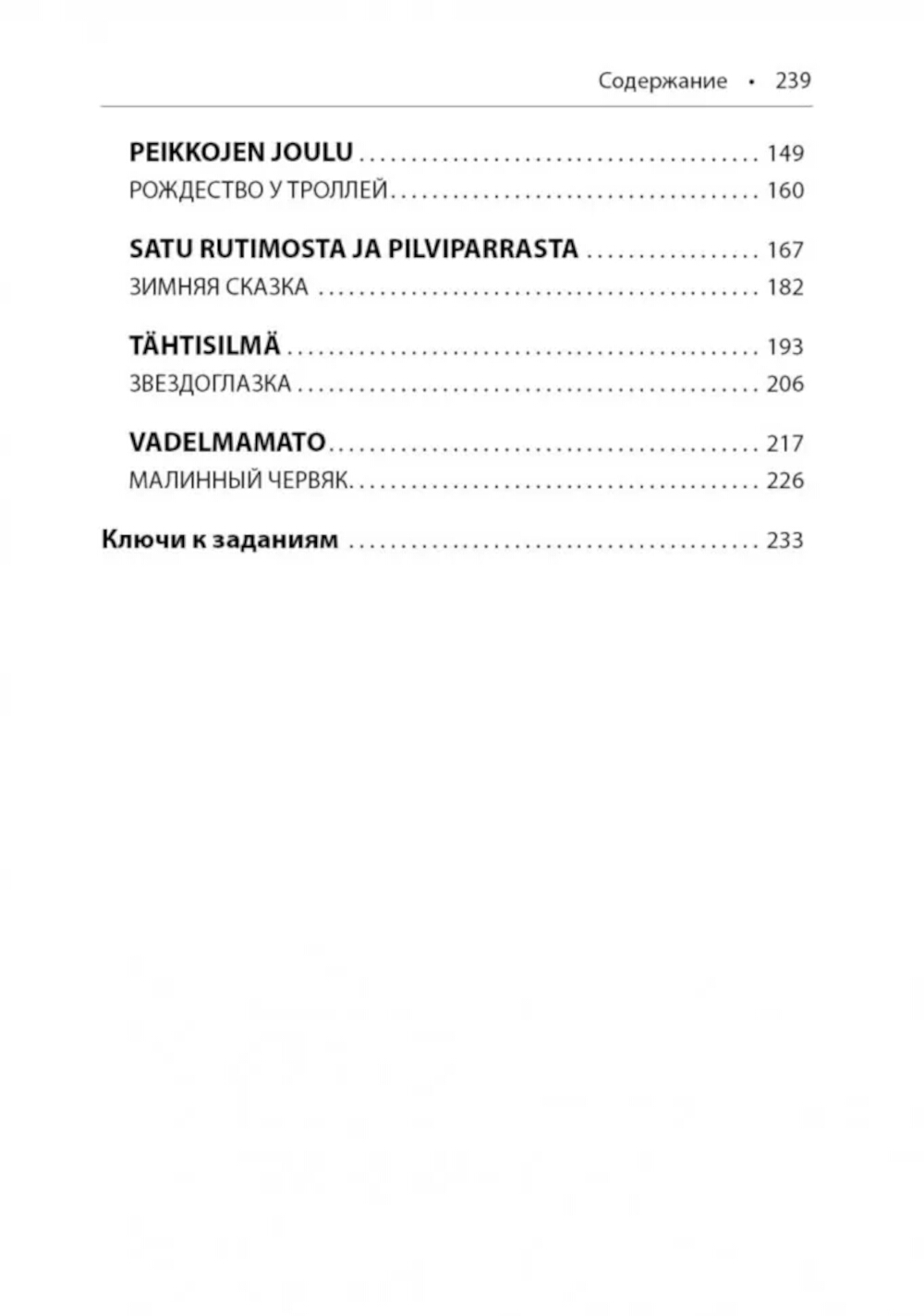 В сборнике десять оригинальных сказок Топелиуса и Лехтонена на финском языке. Каждую сказку сопровождают стильные иллюстрации и художественные переводы на русский язык. Задания к текстам и переводы отдельных слов и выражений помогут закрепить распространенные грамматические формы и пополнить словарный запас. • Иотаркка • Долг императора • Золотая прялка • Понтус и леший • Бриллиантовая корона • Жемчужина Адальмины • Рождество у троллей • Зимняя сказка • Звездоглазка • Малинный червяк В конце книги - ключи к упражнениям для самопроверки. Пособие предназначено для всех, кто изучает финский язык самостоятельно или с преподавателем. Уровень A2-B1.