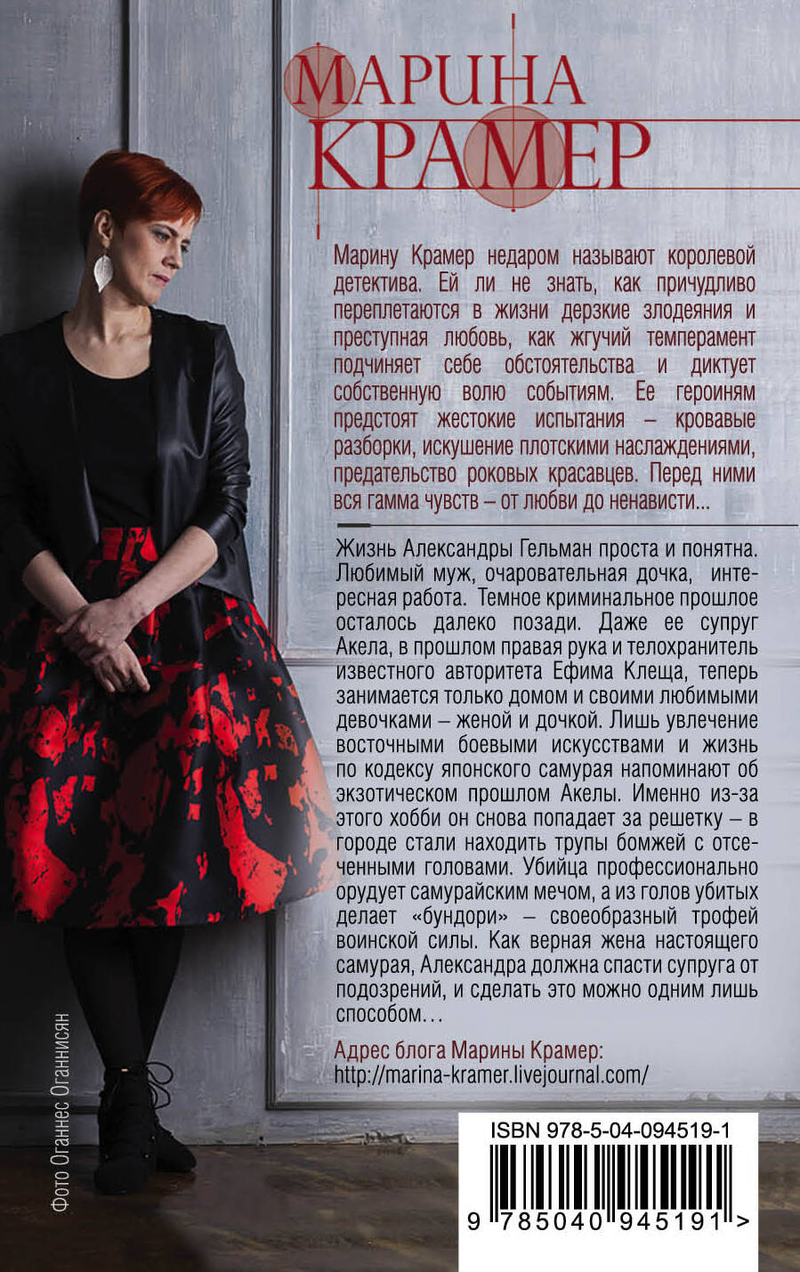 Жизнь Александры Гельман проста и понятна. Любимый муж, очаровательная дочка, интересная работа. Темное криминальное прошлое осталось далеко позади. Даже ее супруг Акела, в бывшем правая рука и телохранитель известного авторитета Ефима Клеща, теперь занимается только домом и своими любимыми девочками - женой и дочкой. Лишь увлечение восточными боевыми искусствами и жизнь по кодексу японского самурая напоминают об экзотическом прошлом Акелы. Именно из-за этого хобби он снова попадает за решетку - в городе стали находить трупы бомжей с отсеченными головами. Убийца профессионально орудует самурайским мечом, а из голов убитых делает "бундори" - своеобразный трофей воинской силы. Как верная жена настоящего самурая, Александра должна спасти супруга от подозрений, и сделать это можно одним лишь способом…| Издательство | ООО "Издательство "Эксмо" |
