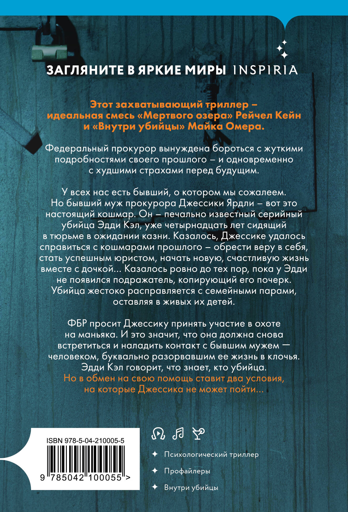 Бестселлер Amazon Charts. Узнала одного - знаешь их всех… Этот захватывающий триллер - идеальная смесь «Мертвого озера» Рейчел Кейн и «Внутри убийцы» Майка Омера. Федеральный прокурор вынуждена бороться с жуткими подробностями своего прошлого - и одновременно с худшими страхами перед будущим. У всех нас есть бывший, о котором мы сожалеем. Но бывший муж прокурора Джессики Ярдли - вот это настоящий кошмар. Он - печально известный серийный убийца Эдди Кэл, уже четырнадцать лет сидящий в тюрьме в ожидании казни. Казалось, Джессике удалось справиться с кошмарами прошлого - обрести веру в себя, стать успешным юристом, начать новую счастливую жизнь вместе с дочкой… Казалось ровно до тех пор, пока у Эдди не появился подражатель, копирующий его почерк. Убийца жестоко расправляется с семейными парами, оставляя в живых их детей. ФБР просит Джессику принять участие в охоте на маньяка. И это значит, что она должна снова встретиться и наладить контакт с бывшим мужем - человеком, буквально разорвавшим ее жизнь в клочья. Эдди Кэл говорит, что знает, кто убийца. Но в обмен на свою помощь ставит два условия, на которые Джессика не может пойти…| Издательство | ООО "Издательство "Эксмо" |