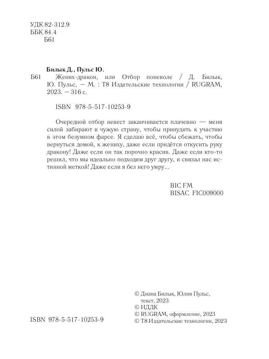 Очередной отбор невест заканчивается плачевно - меня силой забирают в чужую страну, чтобы принудить к участию в этом безумном фарсе. Я сделаю всё, чтобы сбежать, чтобы вернуться домой, к жениху, даже если придётся откусить руку дракону! Даже если он так порочно красив. Даже если кто-то решил, что мы идеально подходим друг другу, и связал нас истинной меткой! Даже если я без него умру…| Издательство | Т8 RUGRAM |