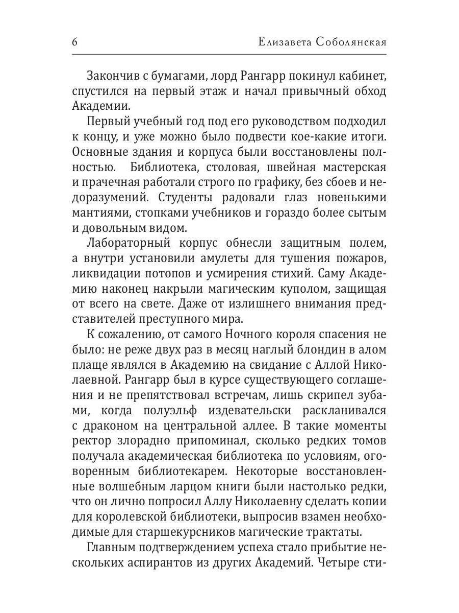 Алла Николаевна выходит замуж и как настоящая женщина, желает, чтобы все вокруг были счастливы! Особенно ректор! Особенно потому, что он никого не желает видеть! Арреми Блэйтин, драконица без дракона, прячется в Академии, чтобы скрыться от мужа-злодея. Это он лишил ее возможности подняться в небо. Мастер-библиотекарь узнает о свершившейся несправедливости, и делает все, чтобы Арреми обрела крылья. Только вот для этого нужен сильный дракон! Кто если не ректор Рангарр поможет аспирантке Академии Драконов?| Издательство | Т8 RUGRAM |