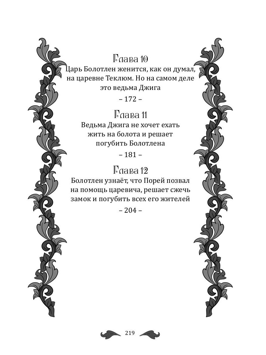 Чудовищный болотный царь Болотлен влюблён в красавицу царевну и решил на ней жениться. Ведьма Джига, которая мечтала стать его женой, путём переселения душ захватила тело царевны. Она жила в замке Порея и ждала Болотлена. С этого момента страшные вещи стали происходить в замке. Царевну в облике ведьмы дьявольские вихри унесли в лес и поселили в доме ведьмы. Встретится ли она с любимым Назаревичем? Узнает ли он её? Болотлен привёз волшебные дива Порею и получил в жёны царевну-ведьму. Она не хотела покидать замок, начался скандал. Болотлен запер жителей замка в подвалах и грозился сжечь их месте с замком. Порею нужно найти способ спасти их и себя.| Издательство | Т8 RUGRAM |