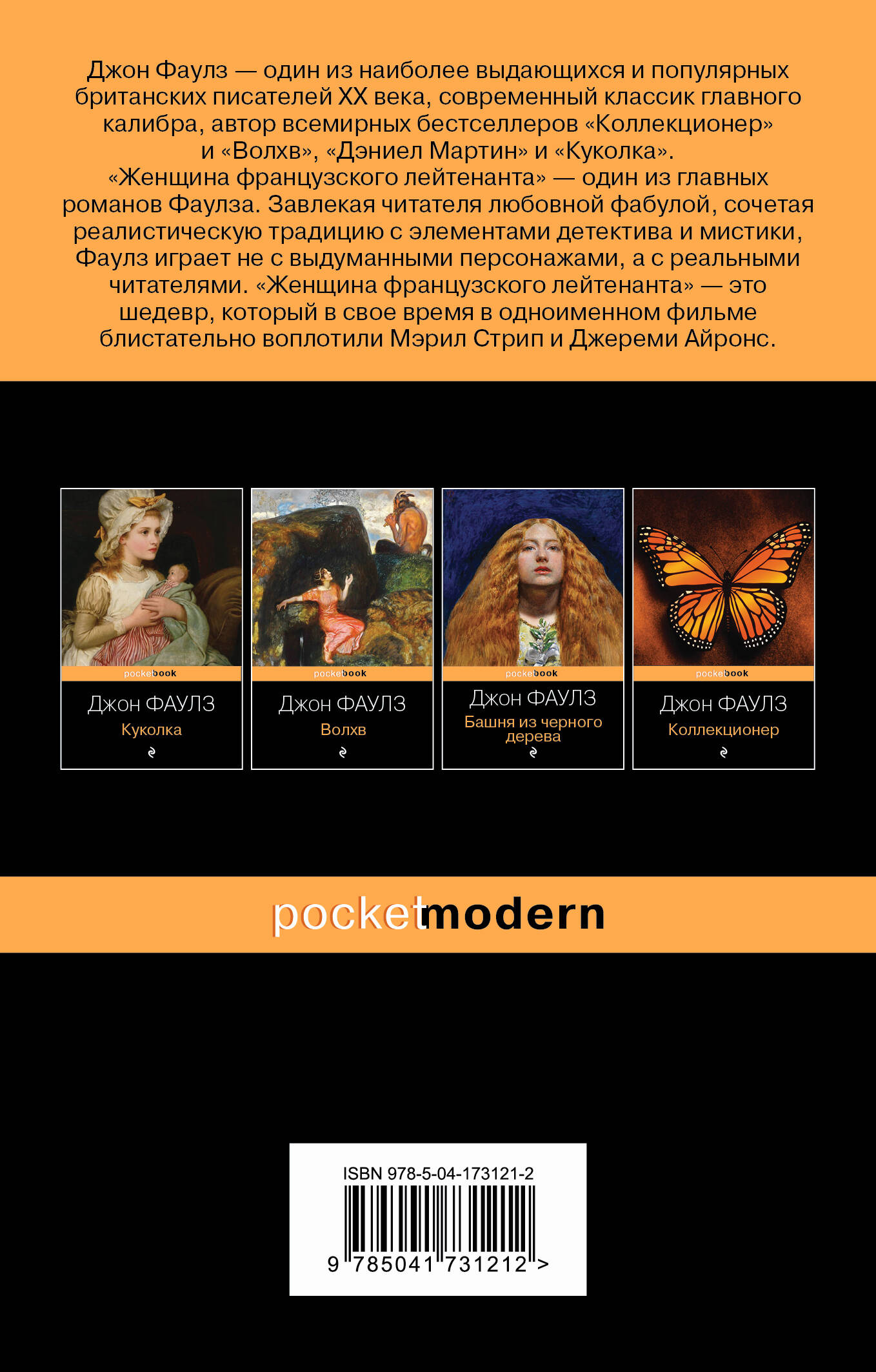 Джон Фаулз - один из наиболее выдающихся и заслуженно популярных британских писателей ХХ века, современный классик главного калибра, автор всемирных бестселлеров «Коллекционер» и «Волхв», «Дэниел Мартин» и «Куколка». «Женщина французского лейтенанта» - один из главных романов Фаулза. Завлекая читателя пикантной любовной фабулой, сочетая реалистическую традицию с элементами детектива и мистики, Фаулз играет не с выдуманными персонажами, а с реальными читателями. «Женщина французского лейтенанта» - это шедевр, который в свое время в одноименном фильме блистательно воплотили Мэрил Стрип и Джереми Айронс.| Издательство | ООО "Издательство "Эксмо" |