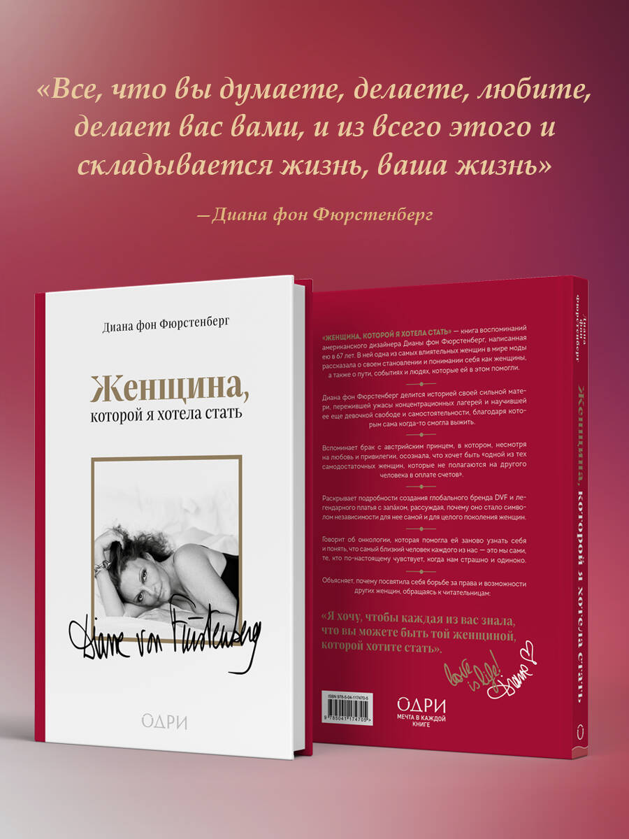 «Женщина, которой я хотела стать» - книга воспоминаний американского дизайнера Дианы фон Фюрстенберг, написанная ею в 67 лет. В ней одна из самых влиятельных женщин в мире моды рассказала о своем становлении и понимании себя как женщины, а также о пути, событиях и людях, которые ей в этом помогли. Диана фон Фюрстенберг делится историей своей сильной матери, пережившей ужасы концентрационных лагерей и научившей ее еще девочкой свободе и самостоятельности, благодаря которым сама когда-то смогла выжить. Вспоминает брак с австрийским принцем, в котором, не смотря на любовь и привилегии, осознала, что хочет быть «одной из тех самодостаточных женщин, которые не полагаются на другого человека в оплате счетов». Раскрывает подробности создания глобального бренда DVF и легендарного платья с запахом, рассуждая, почему оно стало символом независимости для нее самой и для целого поколения женщин. Говорит об онкологии, которая помогла ей заново узнать себя и понять, что самый близкий человек каждого из нас - это мы сами, те, кто по-настоящему чувствует, когда нам страшно и одиноко. Объясняет, почему посвятила себя борьбе за права и возможности других женщин, обращаясь к читательницам: «Я хочу, чтобы каждая из вас знала, что вы может быть той женщиной, которой хотите стать». Человек - это больше, чем какой-то конкретный результат. Больше, чем достижения в карьере или счастливый брак. Больше, чем подросшие дети, которыми невозможно не гордиться. Человек - это вся жизнь, это длинная дорога, это цели, мечты и путь к ним. Диана фон Фюрстенберг - это больше, чем дизайнер и носительница красивой фамилии. И уж точно больше, чем платье с запáхом, благодаря которому она навечно забронировала себе место в истории моды. Кому-то, кто знает о ней лишь выборочные факты, может показаться, что она баловень судьбы из высшего общества. Красивая женщина с обложек журналов, очаровывающая мужчин с именитой родословной, верный друг для успешных богатых магнатов, муза для поцелованных богом талантов. Но на деле Диана - это больше, чем все вышеперечисленное. Она женщина, которой хотела стать и которой стала. И очень интересно наблюдать за тем, какой дорогой она шла, как отстукивала шпильками по бетонным улицам Нью-Йорка и брусчатке Парижа, как босиком бежала по пляжам Бали в поиске себя. Обычные трудности и настоящие трагедии, которые она пережила в своей жизни, не сломили ее желания жить жизнь мечты. С самого раннего возраста ее мама, чудом выжившая в концентрационном лагере, как будто готовила ее к самым тяжелым испытаниям судьбы. Возможно, именно поэтому кажется, что Диане все дается очень легко. Любое ее дело прибыльно, любой ее мужчина - лучший, а дети - каждый успешен в своих начинаниях. И секрет кроется действительно в матери. Она научила ее не бояться. В первую очередь не бояться жить и становиться той женщиной, которой она мечтала быть. Мадонна Мур, журналист