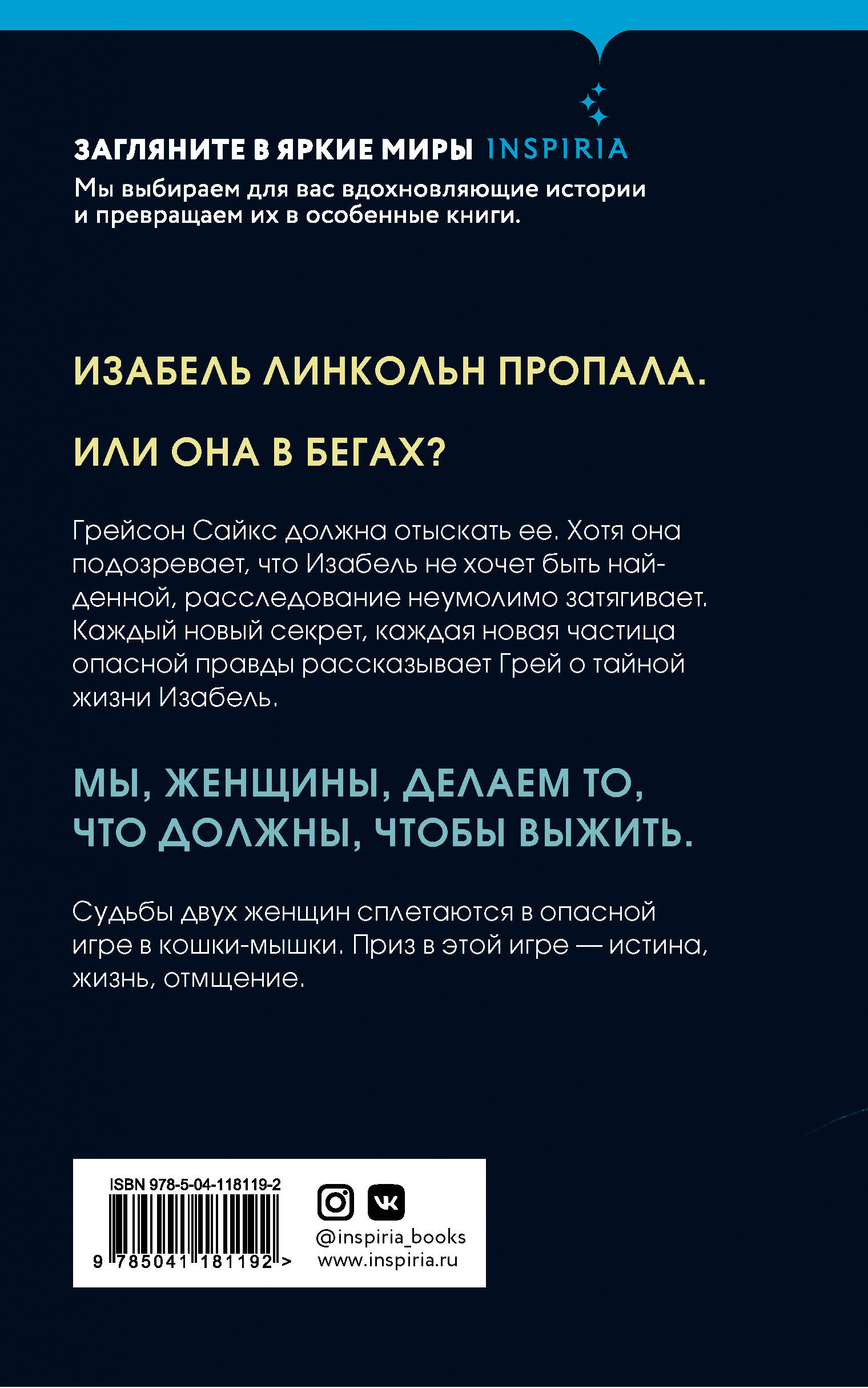 Изабель Линкольн пропала. Или она в бегах? Грейсон Сайкс должна отыскать её. Хотя она подозревает, что Изабель не хочет быть найденной, расследование неумолимо затягивает. Каждый новый секрет, каждая новая частица опасной правды рассказывает Грей о тайной жизни Изабель. Судьбы двух женщин сплетаются в опасной игре в кошки-мышки. Приз в этой игре - истина, жизнь, отмщение. Новый детективный роман Рэйчел Хаузэлл Холл «Женщина в бегах» многие называют прорывом в карьере писательницы. Недавно вышедший, он уже номинирован на премию «Энтони» в категории «Лучший роман в твердом переплете». Это интригующая и местами пугающая история о двух сильных женщинах, чьи судьбы переплетаются. Изабель Линкольн исчезла, а Грейсон Сайкс должна ее найти и помочь спастись. Каждый новый секрет, каждая новая частица опасной правды рассказывает Грей о тайной жизни Изабель. И Сайкс понимает, что их жизни очень похожи…