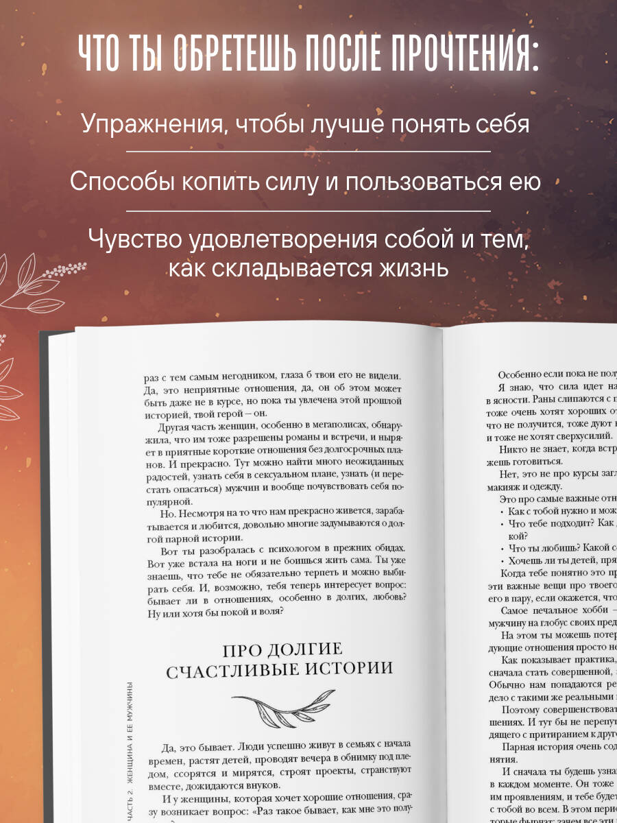 Ты бежишь по жизни, как на марафоне: работа, дети, отношения, дом, родные. Хочешь всё успеть и в какой-то момент понимаешь: сил больше нет. Как сохранить себя, не сломаться и не потерять вкус к жизни? Ирина Мальцева, автор блога «Дом Некеле», педагог и психолог ( за ее плечами более 5000 часов личных консультаций и десятки лет практики), станет твоим проводником на пути к внутренней силе и свободе от чужих ожиданий. Эта книга поможет справиться с вечной гонкой за недостижимым идеалом, находить выход из трудных жизненных ситуаций и сохранять свой внутренний свет, даже когда мир требует слишком многого. Здесь не будет советов по «успешному успеху», НО БУДУТ ЗНАКИ о том: - как справиться с давлением чужих ожиданий; - где взять энергию и что делать, чтобы не терять её впустую; - как принять и полюбить себя и свой возраст; - где найти опору внутри себя, даже когда обстоятельства требуют невозможного. В книге переплетаются личные истории, метафоры, наблюдения и простые упражнения-практики, которые легко применять в любой момент жизни. Особую атмосферу внутренней свободы и душевного тепла создают иллюстрации художницы Елизаветы Рзаевой (hitrovka). Эта книга - для женщин, которые хотят найти в себе силу научиться жить в согласии с собой. Для любителей психологии отношений и женской энергии о самопомощи и личностном росте. Для читательниц бестселлеров жанра психология для женщин, таких как «К себе нежно», «Очарование женственности», «Женский круг» и книг Анны Фениной и Ольги Кругловой. Дарите подруге на день рождения, сестре на Новый год или маме на 8 марта. Затрагивает темы подсознания, силы разума, ретритов и саморазвития. «Сила не валяется под ногами. Но и не прячется в ущелье в далеких холодных горах. Она, словно серебряная река, течет по жилам женщины - живой, самой обычной. Книга Ирины Мальцевой - карта, где отмечены целебные источники этой силы, заповедные берега и обманчивые излучины. Исследуя женскую природу вместе с автором, ты словно напиваешься этой силы, обретаешь устойчивость и, конечно же, женское счастье». - Анна Фенина, психолог, автор бестселлера женских сказок «Одна девочка собирала стаю» «Прочитав "Женщина в поисках силы", ты вспоминаешь то, что знала всегда, но потеряла, забыла, лишилась, - по чему безутешно тосковала и зачастую уже сдалась перед бессилием вернуть. Эта книга с каждой страницей потихоньку возвращает тебе Свое. Свое знание. Свое место. Свой внутренний Дом. Свою Тропу. Свое тело. Свое дело. Своего мужчину. Свои деньги. Свою стаю. Свое священное право на смех и секс, на "Нет!" и "Да!"». - Феофана Габышева, блогер, исследователь игровых практик и ритуалов перехода «Это разговор по душам с лучшей подругой, после которого становится легче дышать. Книга поможет найти выход из темного леса собственных страхов и тревог, возьмёт за руку и покажет, в каком направлении двигаться, чтобы вновь обрести себя». - Алёна, автор блога «Книжный дом»| Издательство | ООО "Издательство "Эксмо" |