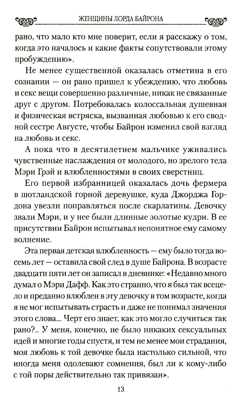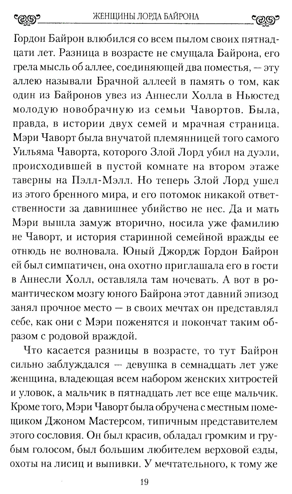 Лорд Джордж Байрон известен миру прежде всего как поэт-романтик, но немалый интерес у современников вызывала его личная жизнь, в частности отношения с женщинами. Ни зависимость от матери, ни хромота не помешали Байрону стать гениальным поэтом и столь же гениальным любовником. Подобно своему герою Чайльд Гарольду, лорд Байрон посвятил отпущенные ему годы «развлеченьям праздным, в безумной жажде радости и нег…». Именно о женщинах лорда Байрона и рассказывает предлагаемая читателю книга.| Издательство | Вече |