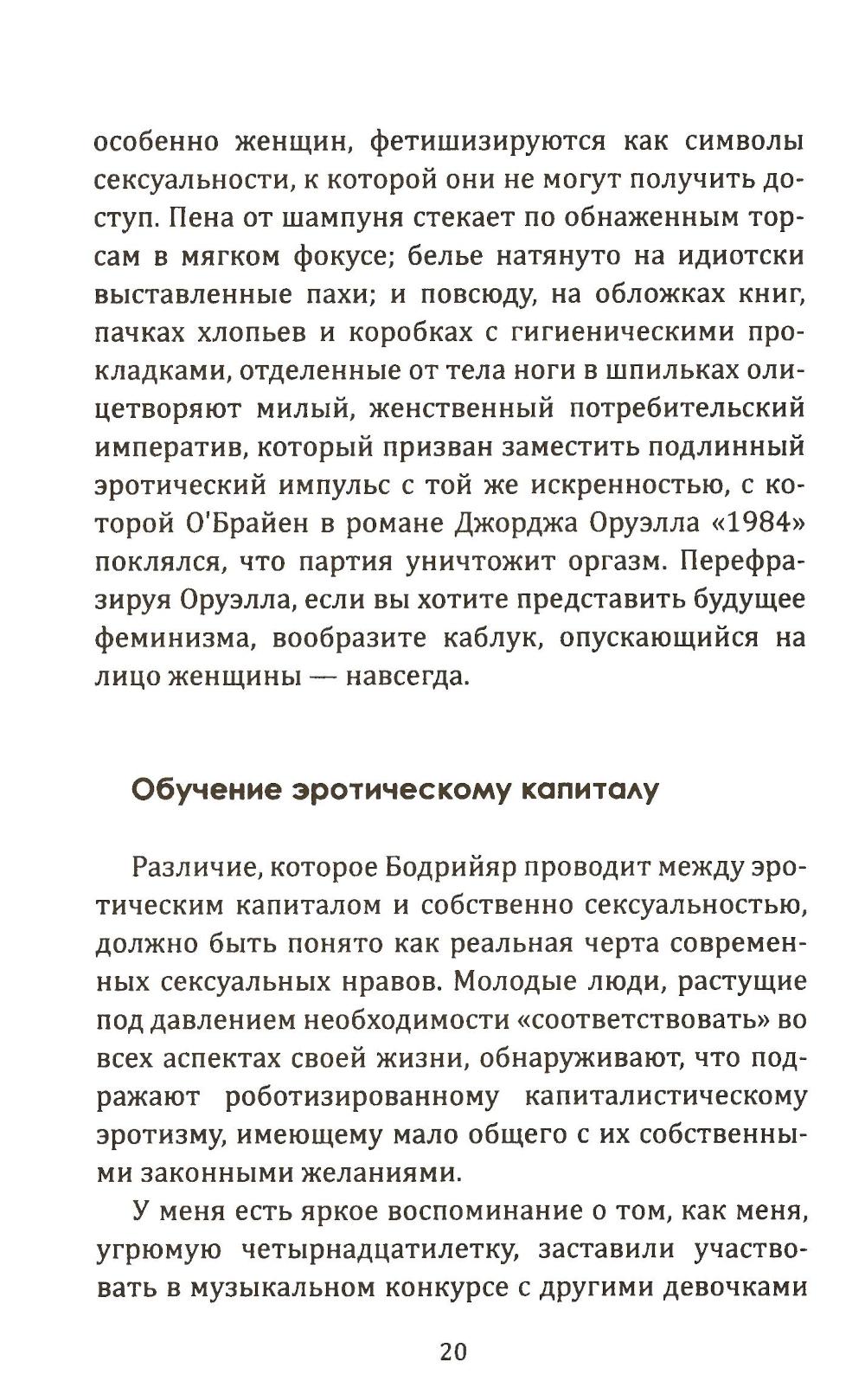 Женское тело в современной западной культуре превратилось одновременно в фетиш и при этом в поле общественной борьбы. Вокруг длины юбок, ширины талии и размера груди ломаются копья, организуются и распадаются политические союзы. В этой книге Лорри Пенни и Анджела Макробби раскрывают механизм эксплуатации женского тела в США и Европе. По их мнению, неолиберализм начиная с 1970-х навязывал женщинам озабоченность своими и чужими телами. Эта политическая технология помогала властям в разобщении женщин, в насаждении индивидуализма и атомизации. Книга, которую вы держите в руках, определила всё движение бодипозитива 2010-х годов. Именно она стала теоретической основой для массового, по-настоящему народного активизма и реальных политических изменений.| Издательство | Родина |