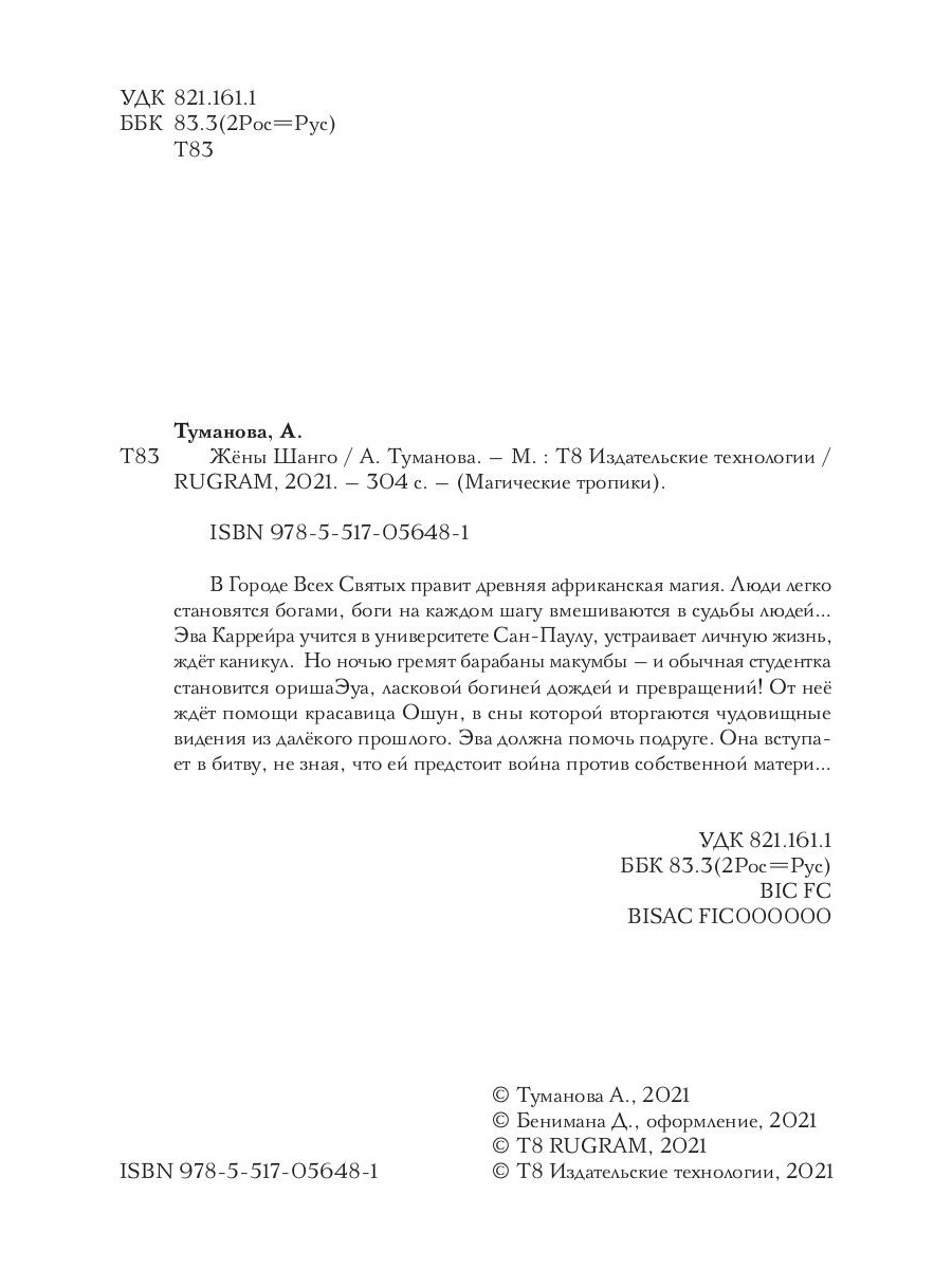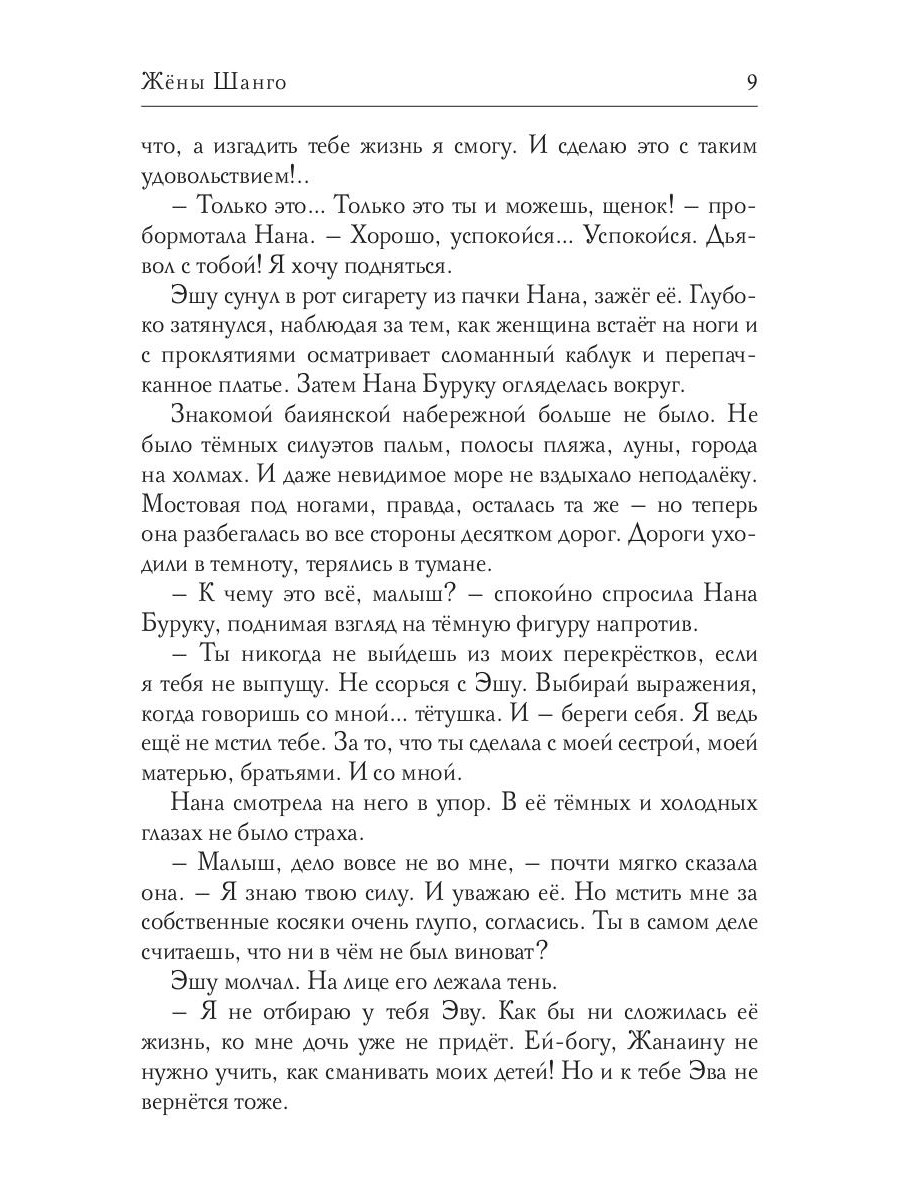 В бразильском Городе Всех Святых правит древняя африканская магия. Люди легко становятся богами, боги на каждом шагу вмешиваются в судьбы людей… Эва Каррейра учится в университете Сан-Паулу, устраивает личную жизнь, ждёт каникул. Но ночью гремят барабаны макумбы - и обычная студентка становится ориша Эуа, ласковой богиней дождей и превращений! От неё ждёт помощи красавица Ошун, в сны которой вторгаются чудовищные видения из далёкого прошлого. Эва должна помочь подруге. Она вступает в битву, не зная, что ей предстоит война против собственной матери…| Издательство | Т8 RUGRAM |