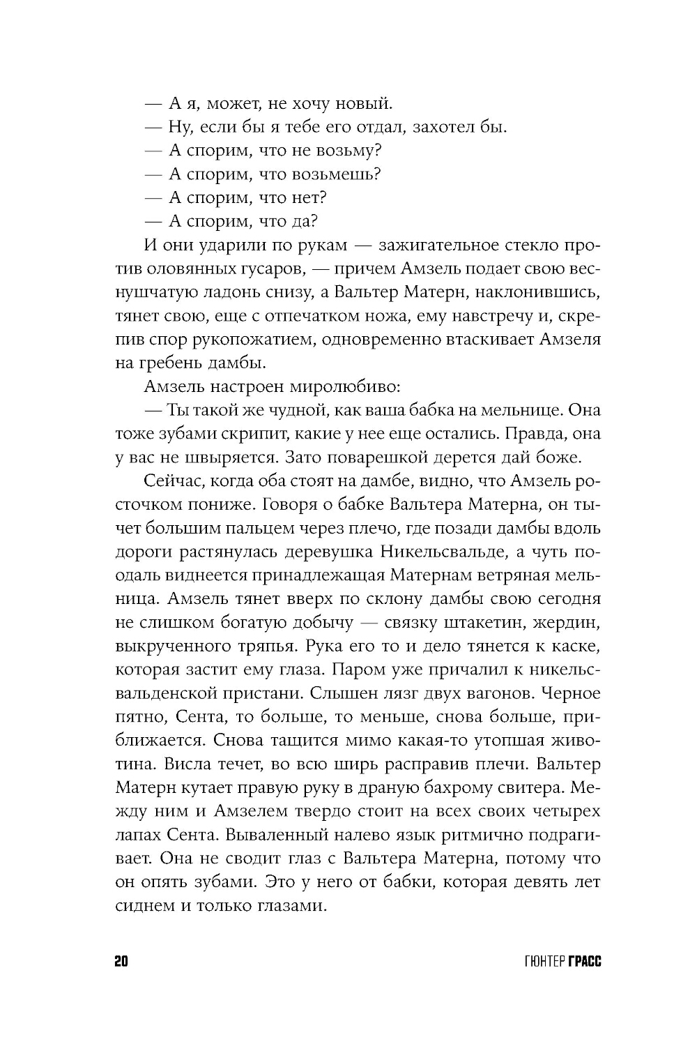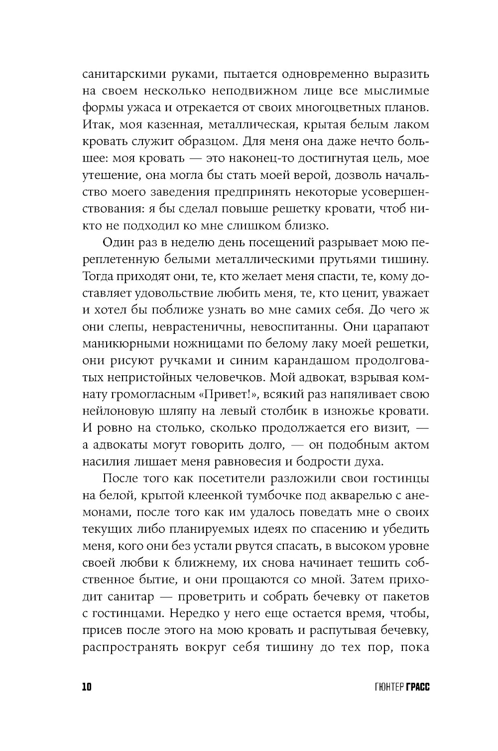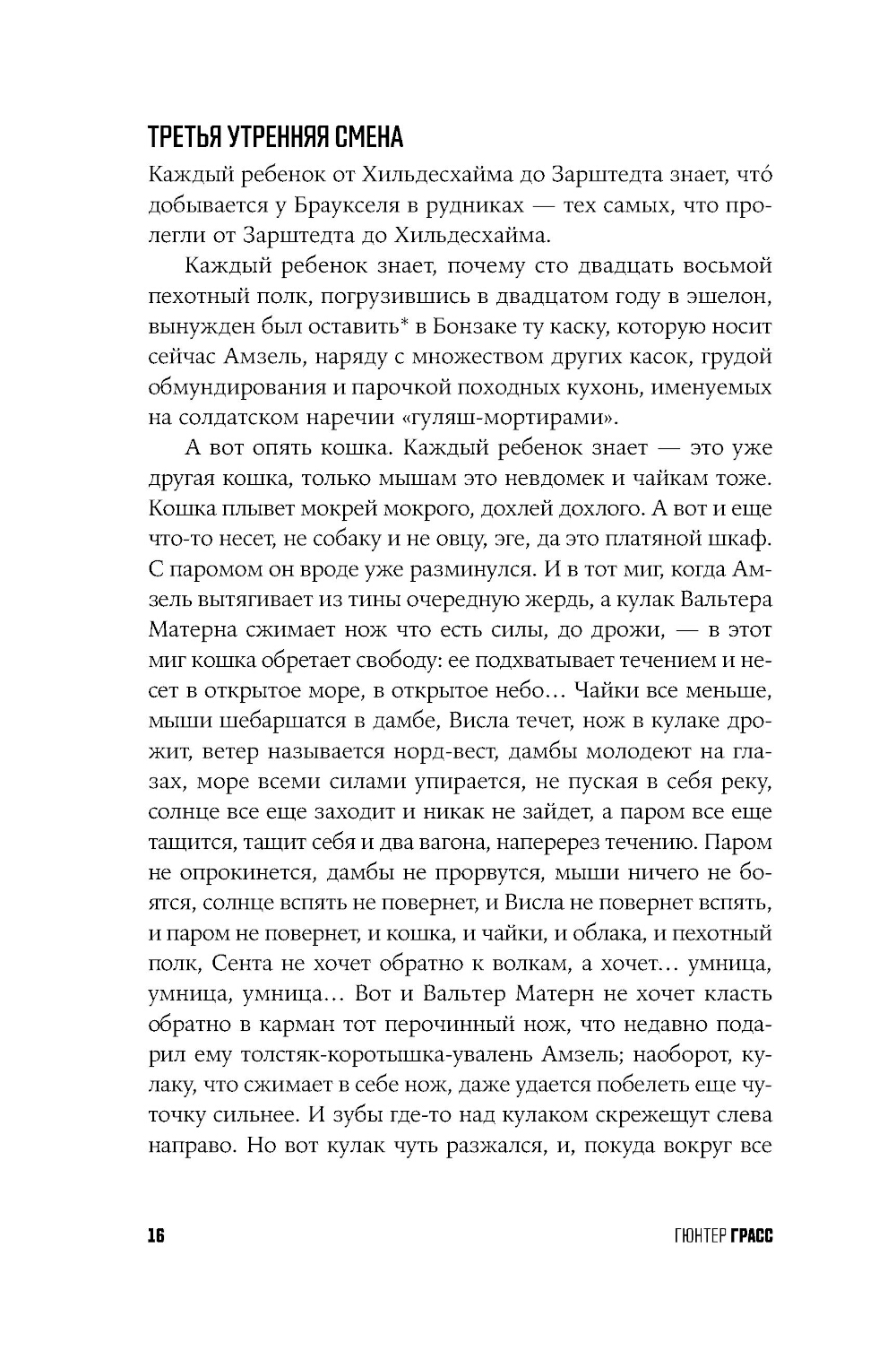 Комплект из 3 книг: «Жестяной барабан» Один из важнейших романов современности, вошедших в послевоенный канон европейской литературы, впервые был издан в 1959 году. Его герой - «маленький человек» Оскар Мацерат, детство которого приходится на годы зарождения национал-социализма. Осознавая абсурдность действительности, он решает перестать расти и отказывается становиться взрослым. Его постоянный спутник - жестяной барабан: отбивая на нем ритм, Оскар выражает свое отношение к окружающему. Безжалостным, саркастичным и в то же время проницательным взглядом наблюдателя «снизу» показана жизнь в Третьем рейхе, атмосфера мира обывателей, порождающая равнодушие ко все возрастающему страшному злу. Роман, в гротескной форме отразивший историю Германии XX века, принес своему автору мировую известность. «Кошки-мышки» «Кошки-мышки» - вторая книга «Данцигской трилогии» Гюнтера Грасса, опубликованная вскоре после романа «Жестяной барабан». В центре повествования - история подростка Йоахима Мальке, чье детство и юность проходят в военном Данциге, в милитаристской атмосфере, проникнутой духом национал-социализма. Всеми презираемый аутсайдер, Мальке пытается изменить отношение окружающих к себе и заслужить славу героя, но терпит поражение. Даже полученная им награда - Рыцарский крест - не помогает обрести признание. Гротескная история приобретает трагические тона и оборачивается для героя жестоким разочарованием. Сам Грасс поясняет ее так: «История с Мальке разоблачает церковь, школу, культ героя - все общество. В его случае все оказалось несостоятельным». «Собачьи годы» «Собачьи годы» - заключительный роман «Данцигской трилогии» Гюнтера Грасса. Он осмысляет историю Германии первой половины и середины XX века: предвоенное время, зарождение и расцвет нацизма, войну, послевоенные годы и период немецкого «экономического чуда». Повествование в каждой из частей романа ведется от лица одного из персонажей: Эдди Амзеля - «жертвы», Харри Либенау - «свидетеля» и Вальтера Матерна - «преступника», каждый из которых по-своему воспринимает происходящее. Гротескные образы, сюжеты и аллегории, пронизывающие повествование, отражают трагическую парадоксальность эпохи. Cатира становится для Грасса единственным средством, способным показать безумие общества, которое взрастило, а затем отрицало ужас Третьего рейха.| Издательство | Альпина нон-фикшн |