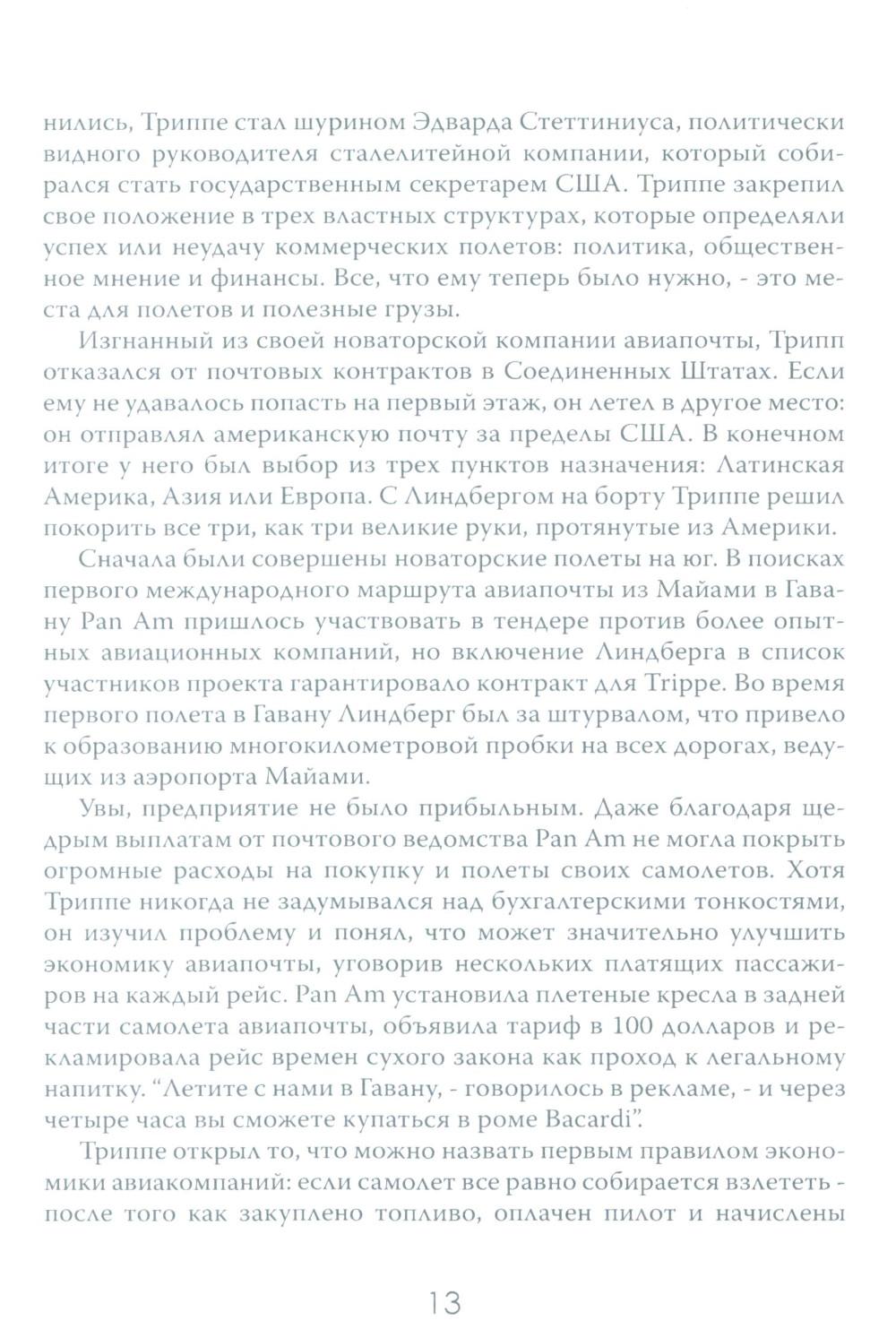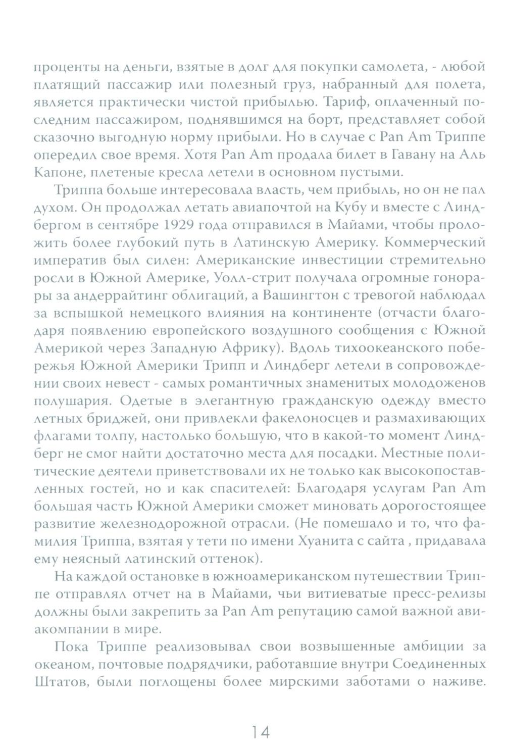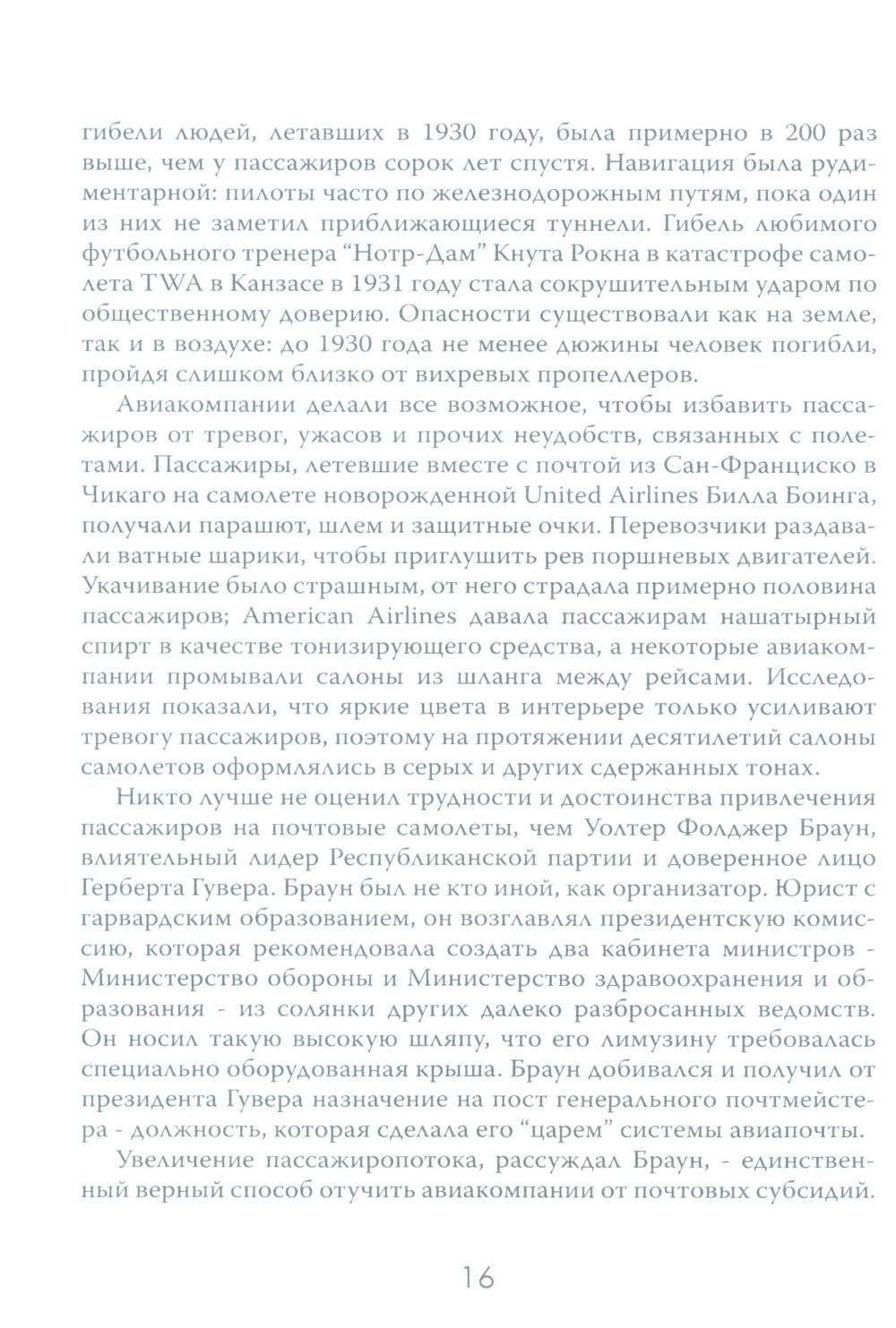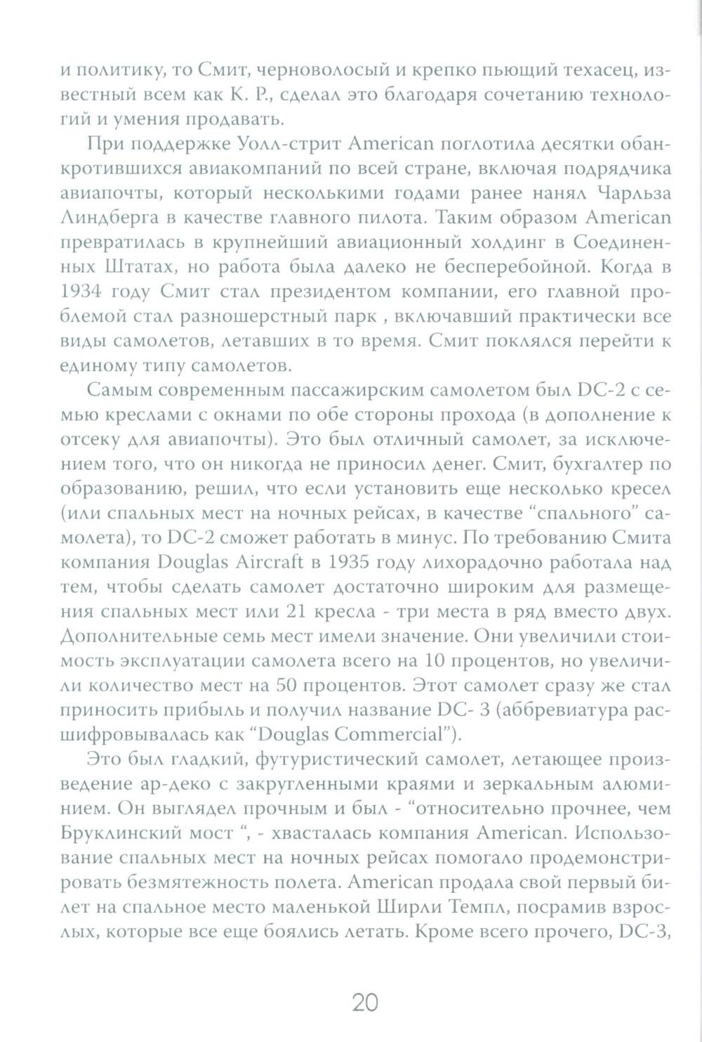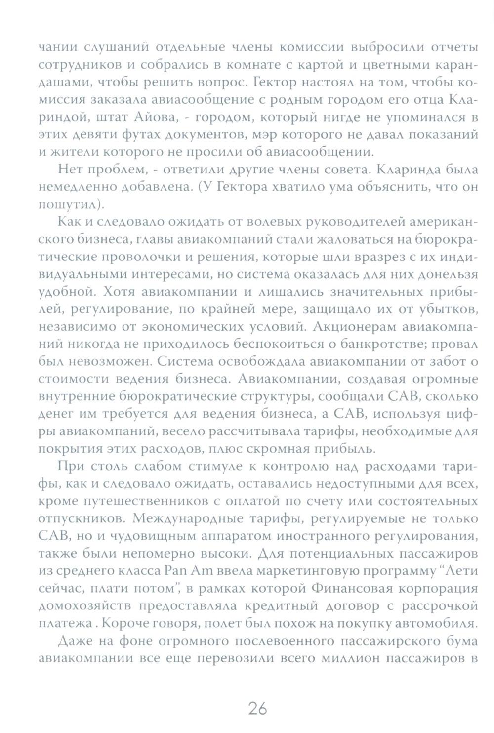 Авиаперелёты уже давно стали обыденной частью человеческой жизни. Ежедневно в небо взмывает множество "железных птиц", перевозя на борту пассажиров в разные части света. Для людей важны удобство и комфорт, и мало кто задумывается о том, как устроены эти огромные корпорации, на чём стоит бизнес авиакомпаний. Данное издание представляет собой увлекательный экскурс в авиаотрасль США на примере крупнейших авиационных компаний. По утверждению автора, американские (и некоторые зарубежные) авиакомпании представляют собой необычайно ясное окно, через которое можно наблюдать за социальными и экономическими потрясениями, охватившими весь мир. Читателю даётся возможность заглянуть в это окно и увидеть все тонкости закулисного авиационного бизнеса, познакомиться с ключевыми игроками этого рынка и проследить истории успеха и ошибок, выяснить механизмы борьбы за власть и за прибыль.| Издательство | Картина мира |