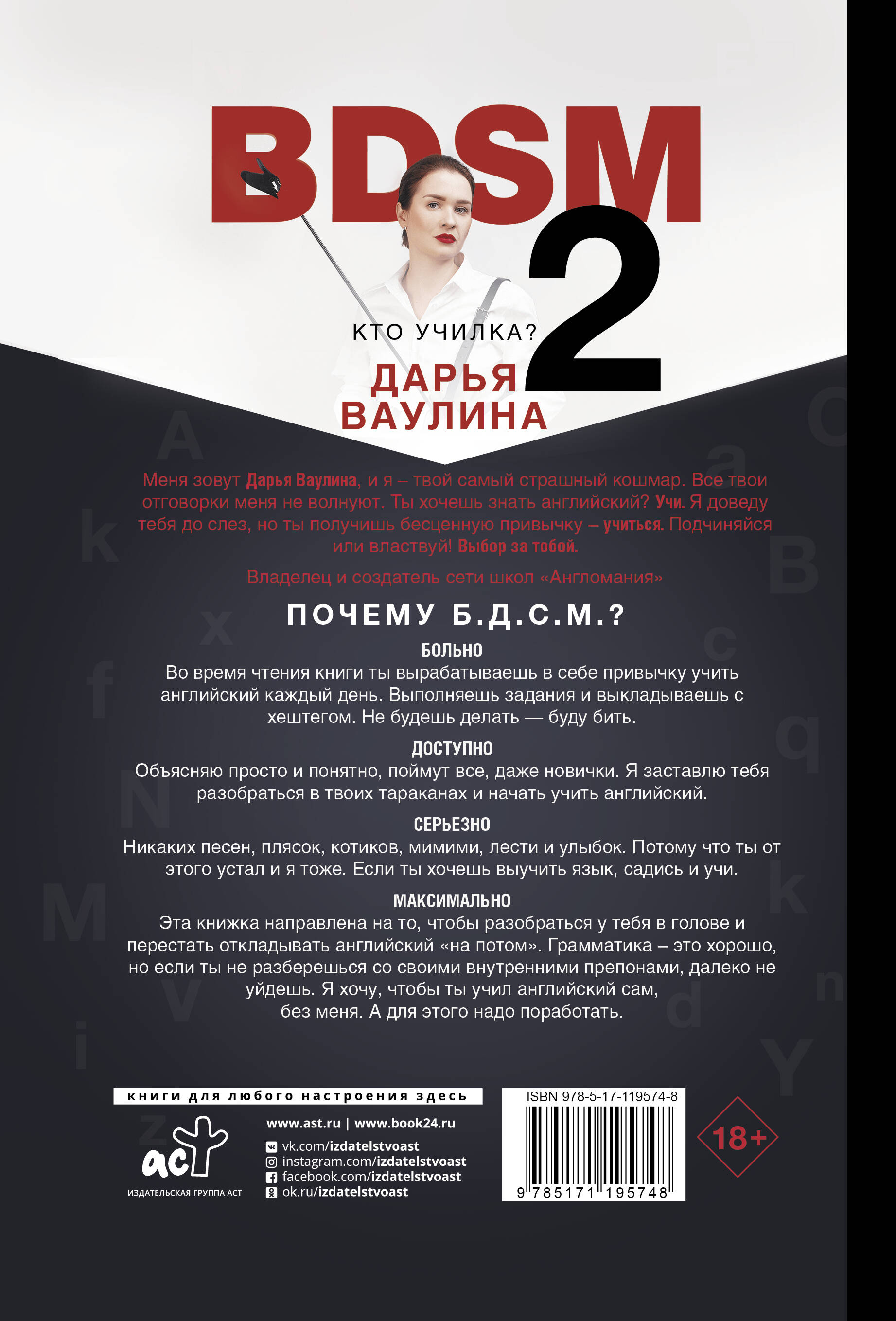 Меня зовут Дарья, я - создатель сети школ "Англомания", автор самого жесткого языкового марафона #бдсманглийский, и книги "Жесткий английский". Я - твой самый страшный кошмар. Ты хочешь знать английский? Учи. Все твои отговорки меня не волнуют. Я доведу тебя до слез, но ты получишь бесценную привычку - учиться. Почему БДСМ? БОЛЬНО. Во время чтения книги ты вырабатываешь в себе привычку учить английский каждый день. Выполняешь задания и выкладываешь с хештегом. Не будешь делать - буду бить. ДОСТУПНО. Объясняю просто и понятно, поймут все, даже новички. Я заставлю тебя разобраться в твоих тараканах и начать учить английский. СЕРЬЕЗНО. Никаких песен, плясок, котиков, мимими, лести и улыбок. Потому что ты от этого устал, и я тоже. Если ты хочешь выучить язык, садись и учи. МАКСИМАЛЬНО. Эта книжка направлена на то, чтобы разобраться у тебя в голове и перестать откладывать английский "на потом". Грамматика - это хорошо, но если ты не разберешься со своими внутренними препонами, далеко не уйдешь. Я хочу, чтобы ты учил английский сам, без меня. А для этого надо поработать.| Издательство | ИЗДАТЕЛЬСТВО "АСТ" |