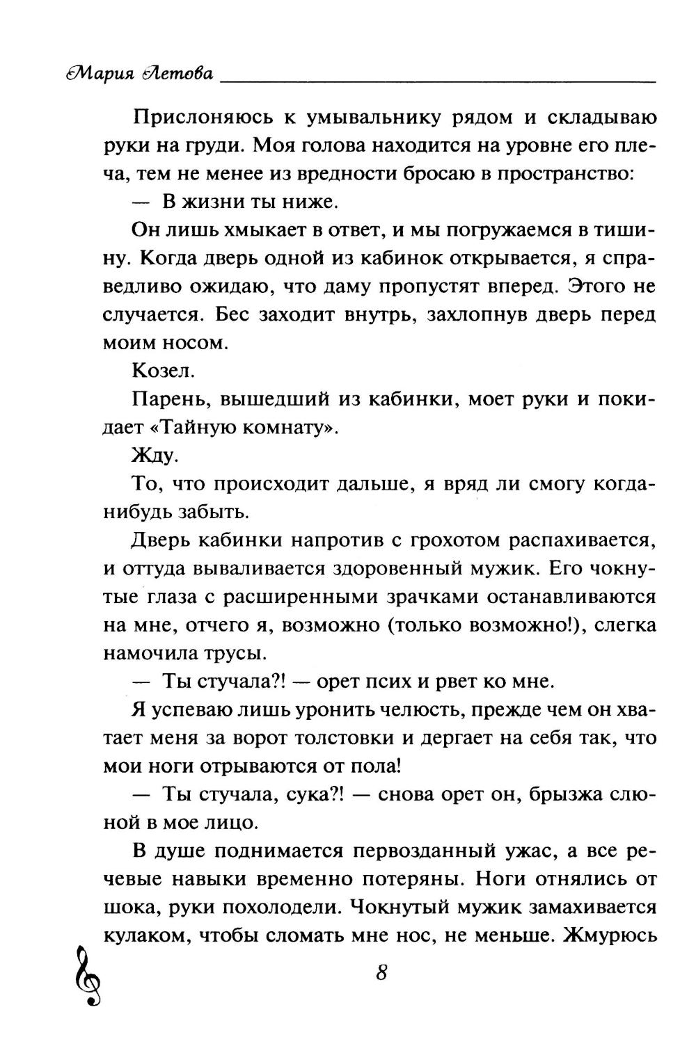 Алёне тридцать два. У нее есть не очень любимая работа, кот Палкан и вечные поиски себя в этом огромном мире. Однажды на нее обрушивается знакомство с Антоном Бесом Наумовым - фронтменом столичной панк-группы и любимцем женщин. Он хам и сквернослов, но целует ее так, что пальчики поджимаются. Это не мешает ему выбешивать ее до крайности, но, похоже, Алёне это уже не важно. Она влюбилась в него совершенно осознанно и, судя по всему, навсегда.| Издательство | Яуза-каталог |