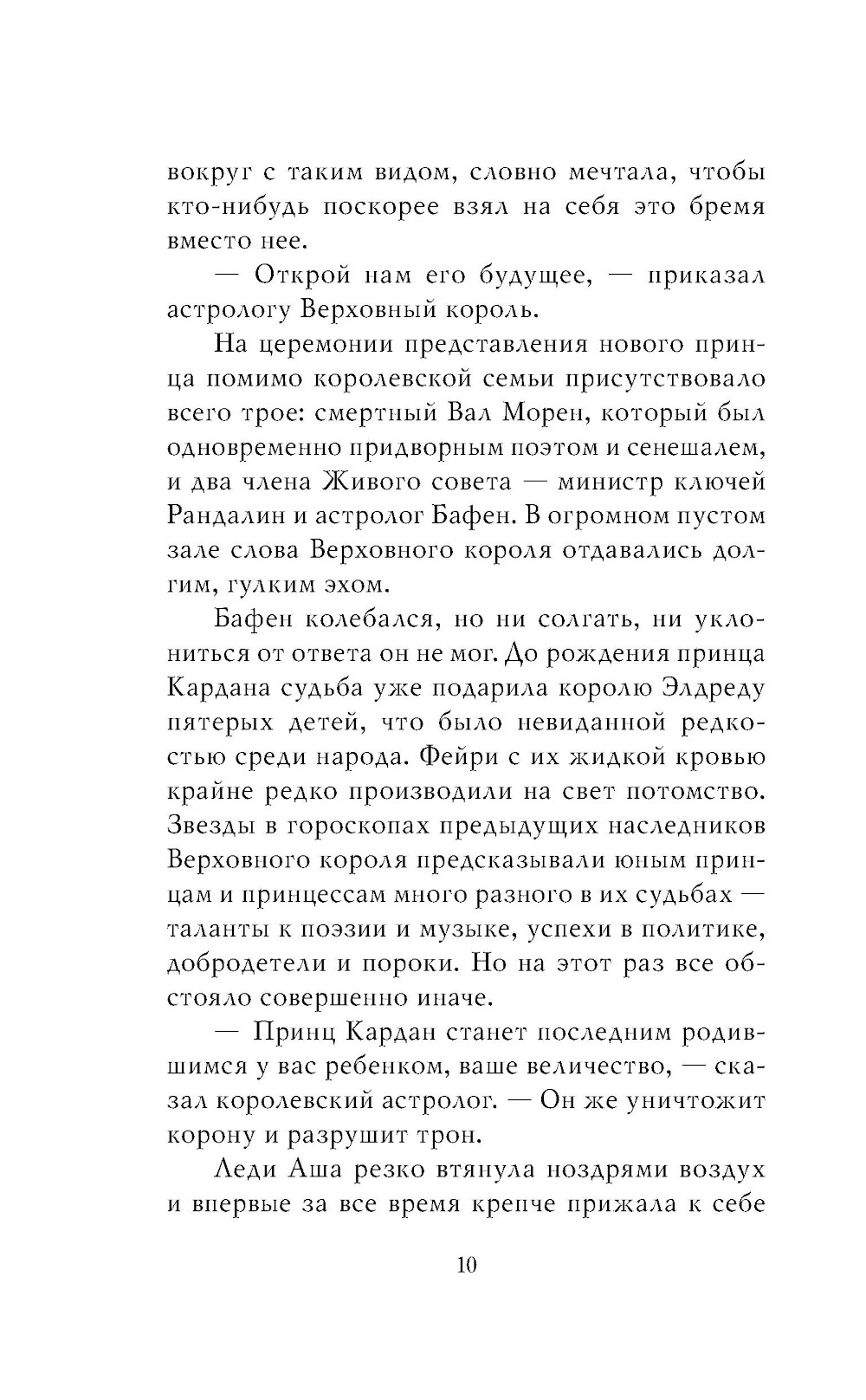 Джуд ненавидит фейри и одновременно преклоняется перед ними. Когда ей было семь, ее родителей хладнокровно убили. Девушку воспитали фейри. Она выросла при дворе одного из самых могущественных и жестоких генералов армии Верховного короля фейри. У него она научилась превосходно владеть мечом. Но чтобы избежать постоянных насмешек со стороны волшебных обитателей страны, которые презирают людей, ей нужно гораздо больше. Джуд нужна власть. Но для этого придется сразиться с Карданом, самым вероломным и коварным принцем Фейриленда. От автора международных бестселлеров New York Times и обладательницы множества литературных наград Холли Блэк. Одна из самых ожидаемых книг 2018 года! Великолепная новая серия о смертной девушке, оказавшейся в водовороте придворных интриг фейри. Долгожданное продолжение международного бестселлера и бестселлера New York Times «Жестокий принц». Одна из самых ожидаемых книг 2019 года! Неповторимая история о смертной девушке, которая благодаря своему упорству, хитрости и коварству поднялась на трон мира фейри! Джуд связала Кардана обещанием подчиняться ей, обещанием, которое продлится ровно год и один день. Теперь она главная фигура за троном, которая дергает за ниточки и умело манипулирует королем. Но Джуд ввязалась в опасную игру фейри, не имея ни друзей, ни союзников. Подстегиваемая амбициями и целью выжить во что бы то ни стало, она плетет интриги и наносит молниеносные удары. Однако когда Джуд выясняет, что среди тех, кому она безоговорочно доверяла, появился предатель, а ее близким грозит опасность, ей приходится предпринять важный шаг и, возможно, даже изменить все правила игры. Тем более что Кардан оказался вовсе не таким слабым и безвольным королем, как думали все обитатели Фейриленда... Долгожданный финал культовой серии, которая разошлась по миру тиражом свыше 10 миллионов экземпляров! Власть легче завоевать, чем удержать. Джуд, Верховная королева Эльфхейма, лишена власти, но не сломлена. Даже находясь в изгнании, она не оставляет надежды вернуться ко Двору фейри. Отринув свои чувства к Кардану, Джуд спешит на помощь сестре, которая попала в беду в Фейриленде. Но знакомого Эльфхейма больше нет. Война на пороге. И Джуд должна собрать все свои силы, чтобы спасти то, что осталось. И даже, возможно, стать настоящей королевой монстров, если потребуется...| Издательство | Эксмо |