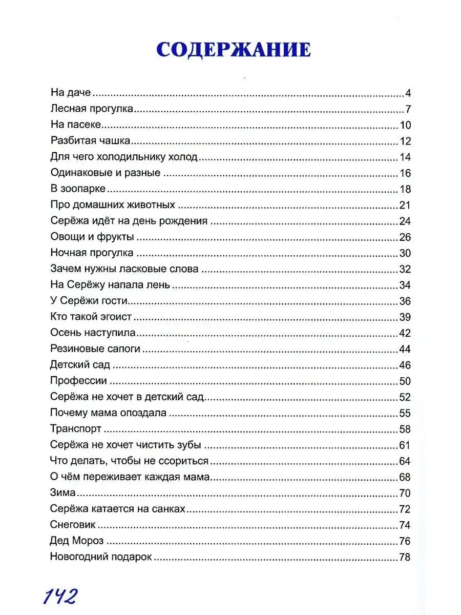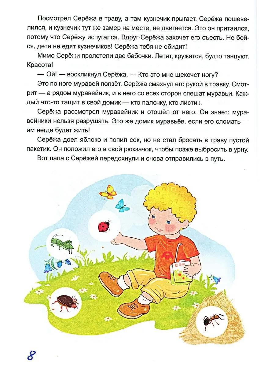 Эта книга - сборник рассказов, написанных детским психологом, главный герой которых - мальчик Серёжа. Цель сборника - развитие и обучение малыша. Каждый рассказ посвящен определённой теме, важной в становлении ребёнка. Например, «Овощи и фрукты», «Времена года», «Одинаковые и разные», «Профессии», «Транспорт» и др. Для организации обучения и воспитания после каждого рассказа размещены дидактические материалы: развивающие упражнения, стишки и загадки (рекомендации по их выполнению приведены в конце книги). Книга поможет ребёнку анализировать своё поведение и формировать правильные отношения с родителями и сверстниками. Для чтения родителями детям 3-4 лет.| Издательство | Билингва |