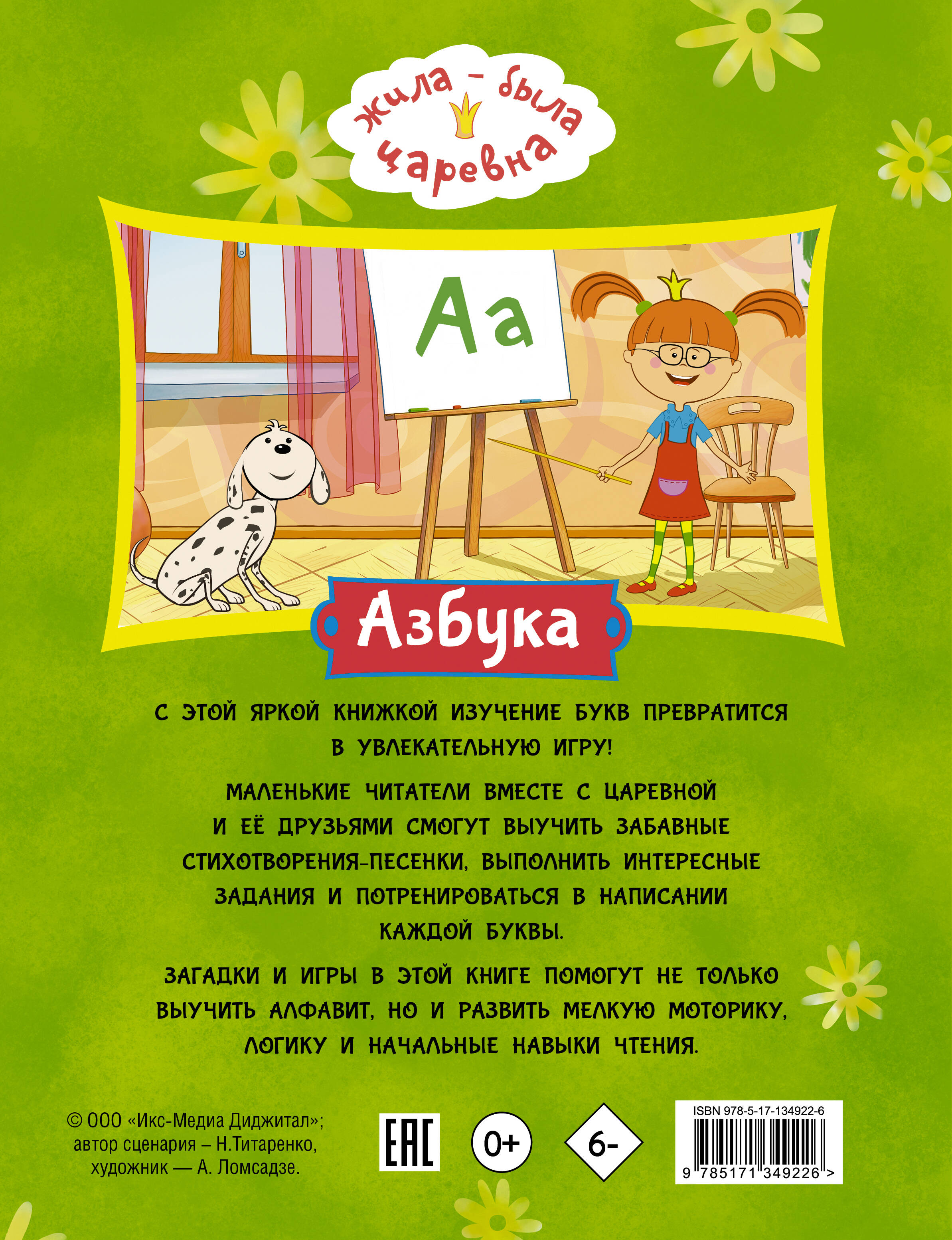 С этой яркой книжкой изучение букв превратится в увлекательную игру! Маленькие читатели вместе с Царевной и её друзьями смогут выучить забавные стихотворения-песенки, выполнить интересные задания и потренироваться в написании каждой буквы. Загадки и игры в этой книге помогут не только выучить алфавит, но и развить мелкую моторику, логику и начальные навыки чтения.| Издательство | ИЗДАТЕЛЬСТВО "АСТ" |