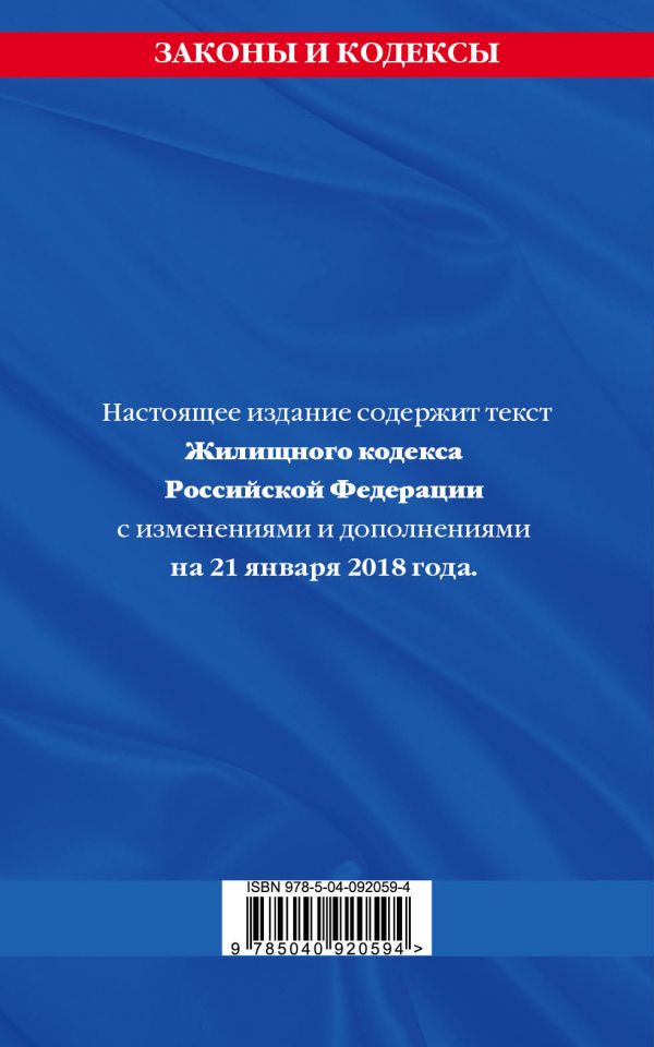 Аннотация: Жилищный кодекс Российской Федерации. Текст с изменениями и дополнениями на 21 января 2018 года