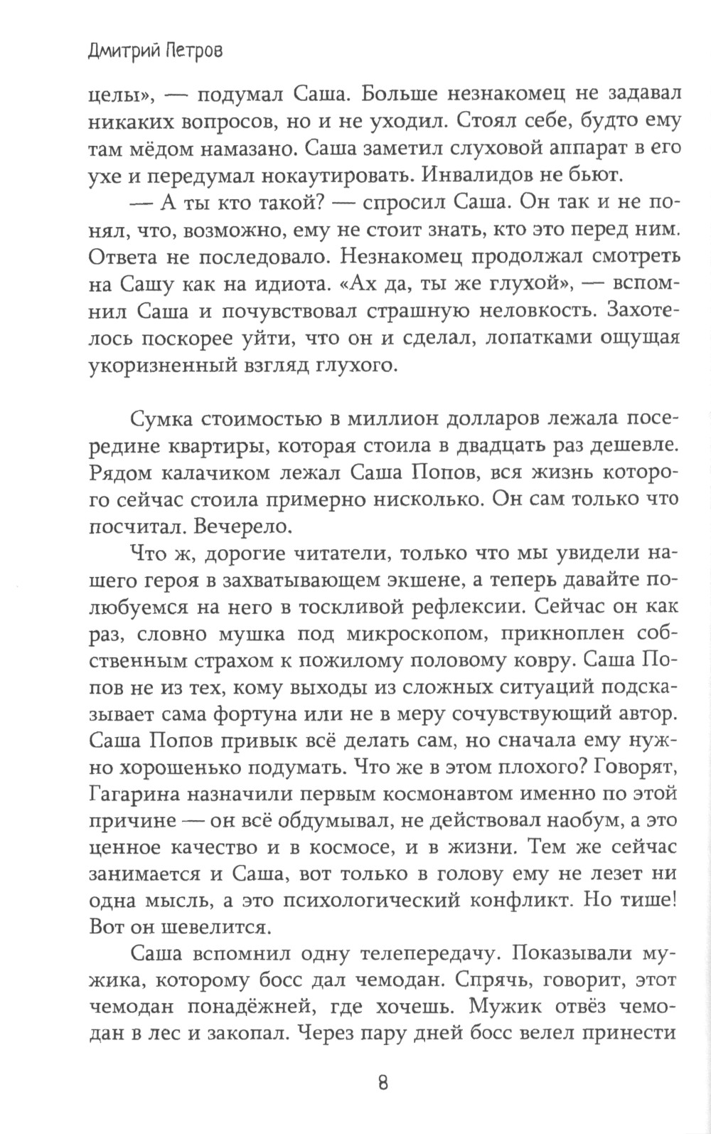 Роман-авантюра о том, что происходит на стройке, пока вы платите ипотеку. Любовный треугольник на глазах у дольщиков. В день ареста влиятельного шефа юный мечтатель Саша Попов остаётся с миллионом долларов в руках. Шеф из заточения велит строить на эти деньги жилой комплекс. Он хочет банально кинуть дольщиков, а наивный Саша всерьёз берётся за возведение дома мечты, и все вокруг норовят обмануть, украсть, подставить, а срок сдачи дома неумолимо приближается... Провинциальному тихоне предстоит вырасти из гайдаевского Шурика в Майкла Корлеоне, построить самый красивый дом в городе и найти любовь. Все имена и события вымышлены, любые совпадения случайны. Автор ни разу не указывает, где происходит действие, но читатели угадывают свой город безошибочно.| Издательство | Крафтовая литература |