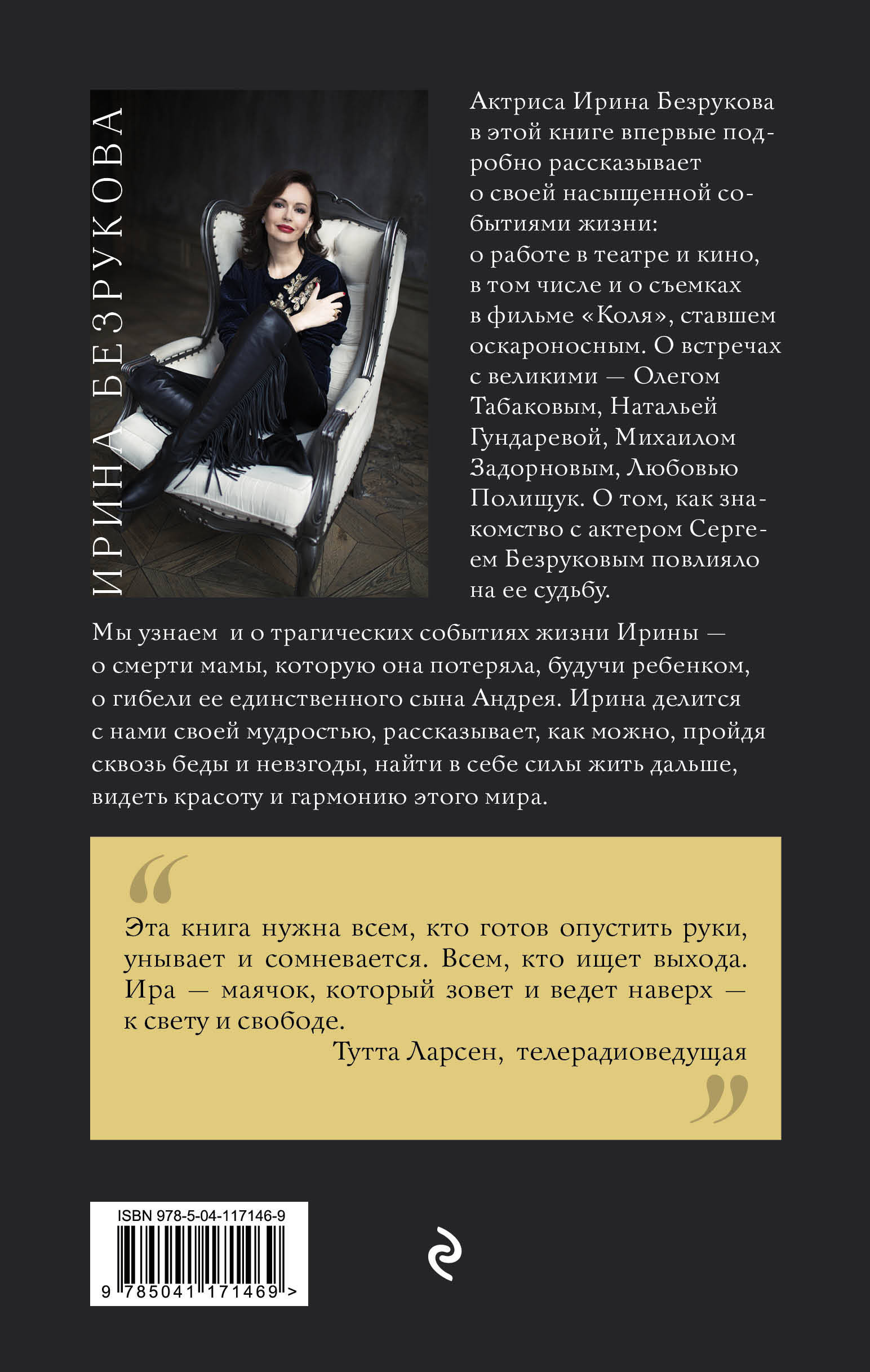 Жизнь Ирины Безруковой никогда не была похожей на сказку. В 11 лет она потеряла маму, и их с сестрой воспитывала бабушка, Ирине пришлось узнать, как зарабатываются деньги, пока сверстники еще сидели за партой. С отличием закончив Ростовское театральное училище, пожертвовала актерской карьерой ради карьеры мужа Игоря Ливанова. Ирина сыграла в чешском оскароносном фильме «Коля» (1997, номинация «Лучший иностранный фильм»). Но снова поставила карьеру на паузу и ушла на второй план, став женой Сергея Безрукова. Пережив смерть сына и тяжелый развод, Ирина нашла в себе силы жить дальше и стала примером и вдохновением для множества женщин в нашей стране. В этой книге Ирина впервые расскажет правду и ответит на вопросы, как можно в 50 лет решиться на шоу «Последний Герой», что такое театр для слепых и где черпать силы, чтобы раскрасить жизнь красками и получать удовольствие от каждого прожитого дня. «Когда любуешься Ирой Безруковой, кажется: вот у этой женщины уж точно в жизни все легко и гладко. Невозможно представить, что ее путь полон потерь, боли, падений... Эта книга нужна всем, кто готов опустить руки, унывает и сомневается. Всем, кто ищет выход. Ира - маячок, который зовет и ведет наверх - к свету и свободе». - Тутта Ларсен, телерадиоведущая| Издательство | ООО "Издательство "Эксмо" |