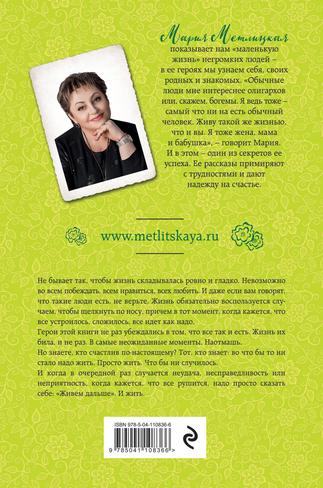Каждая книга Марии Метлицкой - событие. Ее ждут, ею зачитываются, ее ставят на полку и вновь достают в трудные минуты. Потому что Метлицкая, как никто другой, убеждает в том, что, пока мы живы, все можно исправить. А значит, поводов для тоски и грусти просто нет. Не бывает так, чтобы жизнь складывалась ровно и гладко. Невозможно во всем побеждать, всем нравиться, всех любить. И даже если вам говорят, что такие люди есть, не верьте. Жизнь обязательно воспользуется случаем, чтобы щелкнуть по носу, причем в тот момент, когда кажется, что все устроилось, сложилось, все идет как надо. Герои этой книги не раз убеждались в том, что все так и есть. Жизнь их била, и не раз. В самые неожиданные моменты. Наотмашь. Но знаете, кто счастлив по-настоящему? Тот, кто знает, что во что бы то ни стало надо жить. Просто жить. Что бы ни случилось. И когда в очередной раз случаются неудача, несправедливость или неприятность, когда кажется, что все рушится, надо просто сказать себе: "Живем дальше". И жить.| Издательство | ООО "Издательство "Эксмо" |