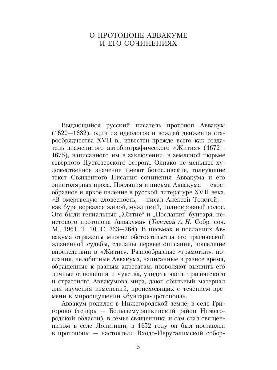 Протопоп Аввакум (1620-1682) - невероятно яркое и своеобразное явление в истории русской литературы. Вдохновитель церковного раскола и один из ведущих идеологов старообрядчества последние пятнадцать лет своей неутомимой подвижнической жизни провел в земляной тюрьме в заполярном городе Пустозерске. Здесь, в заключении, он продолжил борьбу за "правую веру" литературными средствами, написав свыше шестнадцати произведений, ставших уникальными памятниками средневековой русской словесности. Главным среди них признано его "Житие" - проповедь верным, отповедь никонианам, история гонений за веру, первая русская автобиография и шедевр психологической прозы, которым восхищались И. С. Тургенев, Л. Н. Толстой, Д. С. Мережковский, М. Волошин и другие писатели и поэты. Однако не меньшими художественными достоинствами обладают богословские сочинения Аввакума и его эпистолярная проза, отразившие жанровое и языковое новаторство автора. Подготовка настоящего издания - заслуга выдающего исследователя древнерусской литературы Н. С. Демковой. Снабженная обширным справочным аппаратом, книга адресована как специалистам, так и самому широкому кругу читателей.
