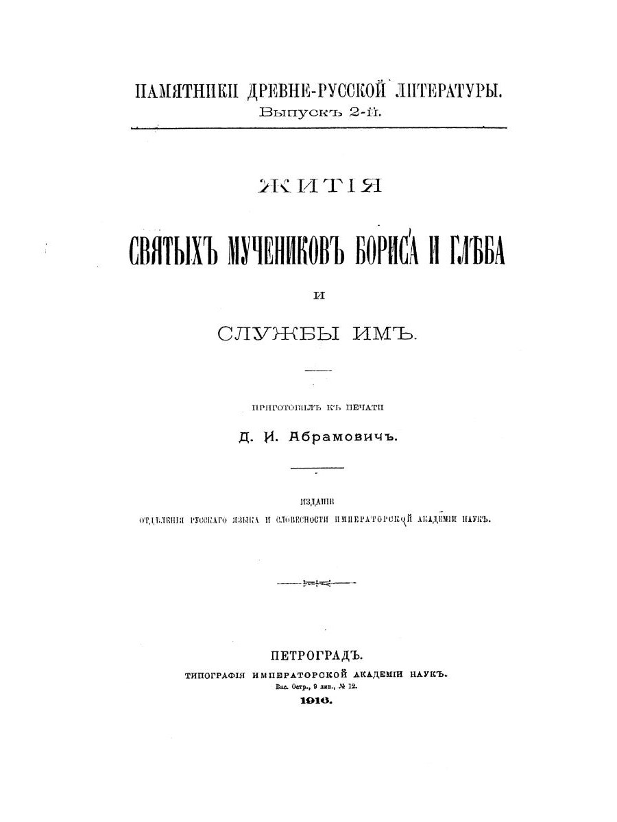 Аннотация: Жития святых мучеников Бориса и Глеба и службы им
