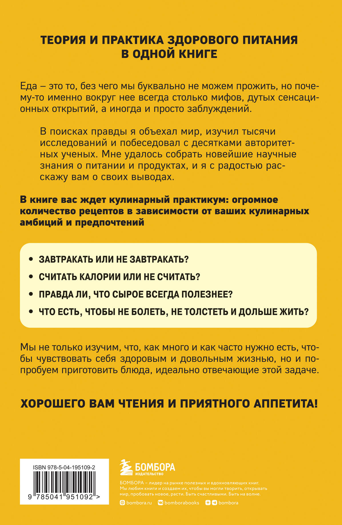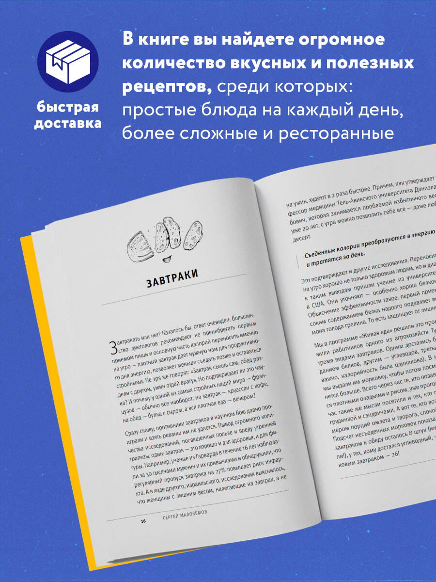 Оказывается, омлет можно не только жарить и запекать, но и варить, альтернативой овсянке могут быть банановые блинчики, а из индейки можно приготовить капкейки! Все рецепты, в зависимости от сложности, поделены на категории, и приготовить себе полезное блюдо по рецепту из этой книги сможет даже новичок. Для опытных кулинаров и гурманов Сергей Малоземов подготовил специальный раздел с необычными ресторанными блюдами. Вас ждет большой кулинарный практикум - завтраки, салаты и закуски, основные блюда, десерты и напитки - и интереснейшая теоретическая часть, из которой вы узнаете, какая еда помогает нам не болеть, не толстеть и жить дольше.| Издательство | ООО "Издательство "Эксмо" |