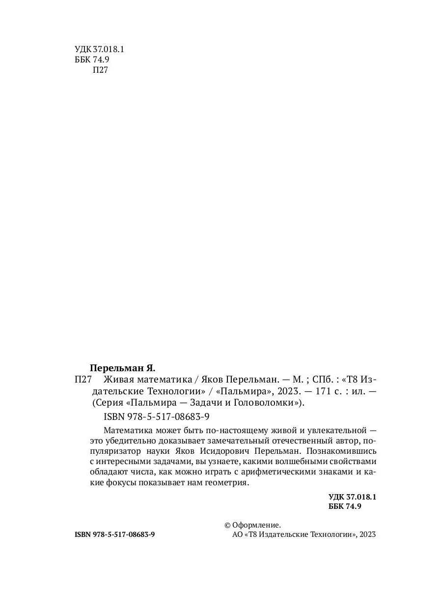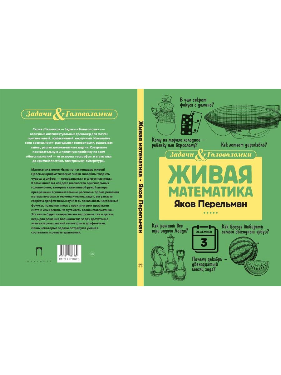 Серия "Пальмира - Загадки и Головоломки" - отличный интеллектуальный тренажер для мозга: оригинальный, эффективный, нескучный. Испытайте свои возможности, разгадывая головоломки, раскрывая тайны, решая занимательные задачи. Совершите познавательную и приятную "пробежку" по всем областям знаний - от истории, географии, математики до криминалистики, электроники, литературы. Математика может быть по-настоящему живой! Простые арифметические знаки способны творить чудеса, а цифры - превращаться в секретные коды. В этой книге вы найдете множество оригинальных головоломок, которые талантливой рукой автора превращены в увлекательные рассказы. Кроме решения математических и геометрических задач вы узнаете секреты арифметики, научитесь показывать несложные фокусы, познакомитесь с практичными приемами счета и измерения. Не пугайтесь слова "математика"! Эта книга будет интересна как взрослым, так и детям: ведь для решения большинства задач достаточно элементарных знаний геометрии и арифметики. Лишь некоторые задачи потребуют умения составлять и решать уравнения.